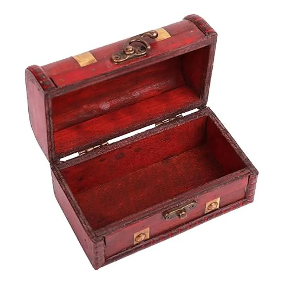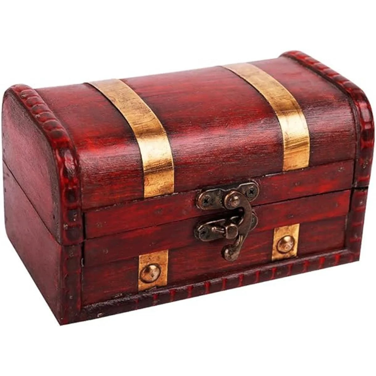 WaaHome Cajas del tesoro pirata, caja pequeña de madera del tesoro para regalo de niños, decoración del hogar 5.5 x 3.2 x 3.2 pulgadas