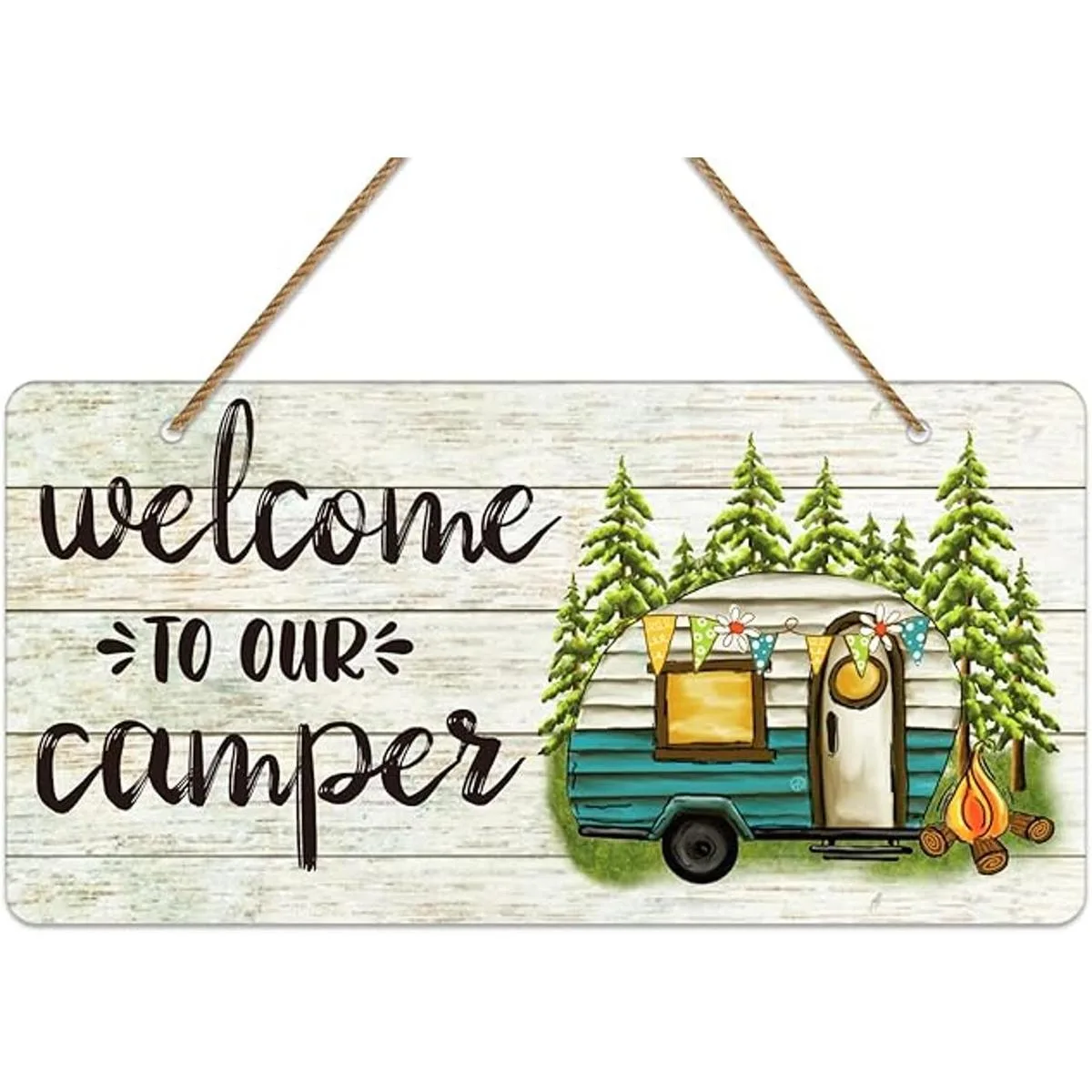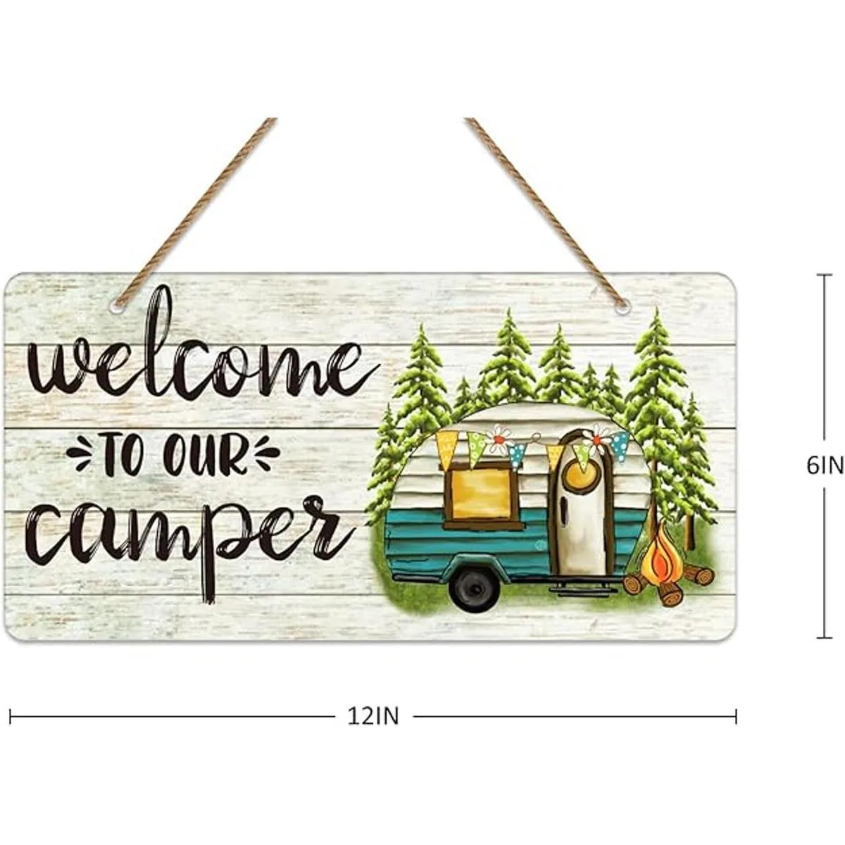 WaaHome Farmhouse Welcome to Our Letrero de decoración de campista de 6 x 12 pulgadas, decoración de camping para interior del hogar, habitación o decoración de pared, regalos de camp