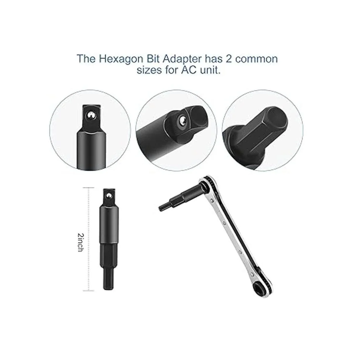 WADEO Hvac Llave de servicio de refrigeración de 38 pulgadas a 14 pulgadas, 516 pulgadas x 14 pulgadas con adaptador de broca hexagonal para aire acondicionado, reparación de equipos de refrigeración