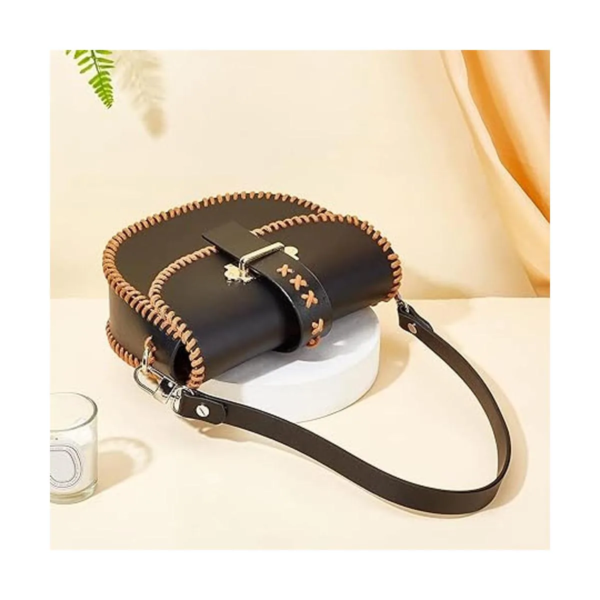 WADORN Manijas de cuero vacuno, correa de hombro de cuero genuino de 21.2 pulgadas, correa de cuero auténtico, correa de repuesto con cierres giratorios para hacer bolsos, accesorios de fabricación de bolsos, color negro