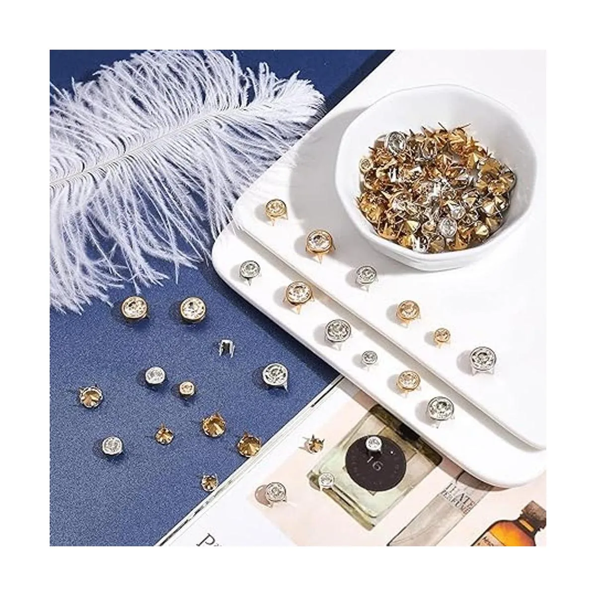 WADORN Paquete de 180 remaches de diamantes de imitación, 3 tamaños de diamantes de imitación, puntas de clavo, remaches de metal de 680.394 in, cuentas de garra, remaches para manualidades de cuero, bricolaje