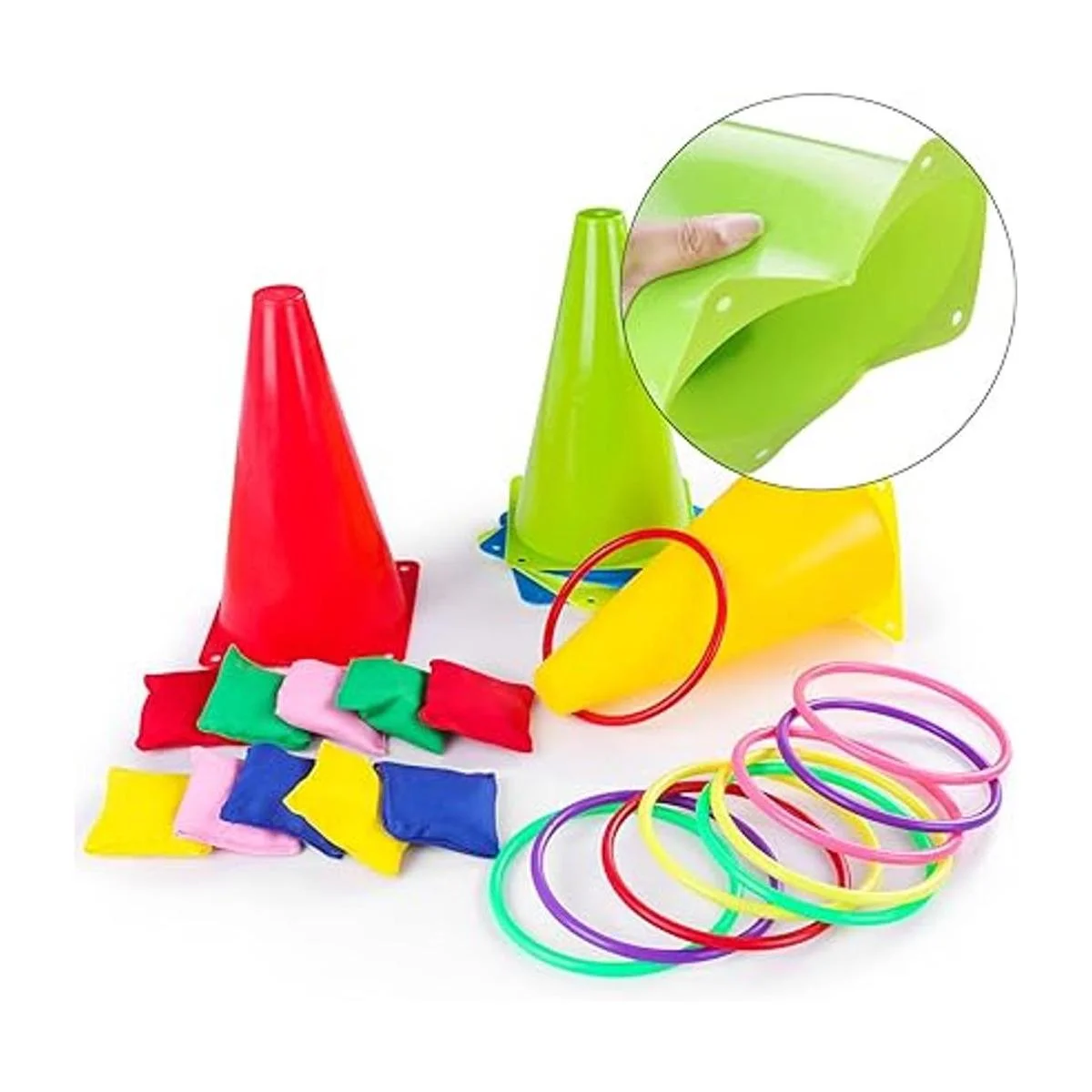 Waenerec Juego combinado de 36 piezas de juegos de carnaval 4 en 1, juego de puf, juegos de plástico suave para lanzamiento de anillos de cono para interiores y exteriores, escuela, día de campo, fiesta de cumpleaños, juegos de patio para niños y adultos