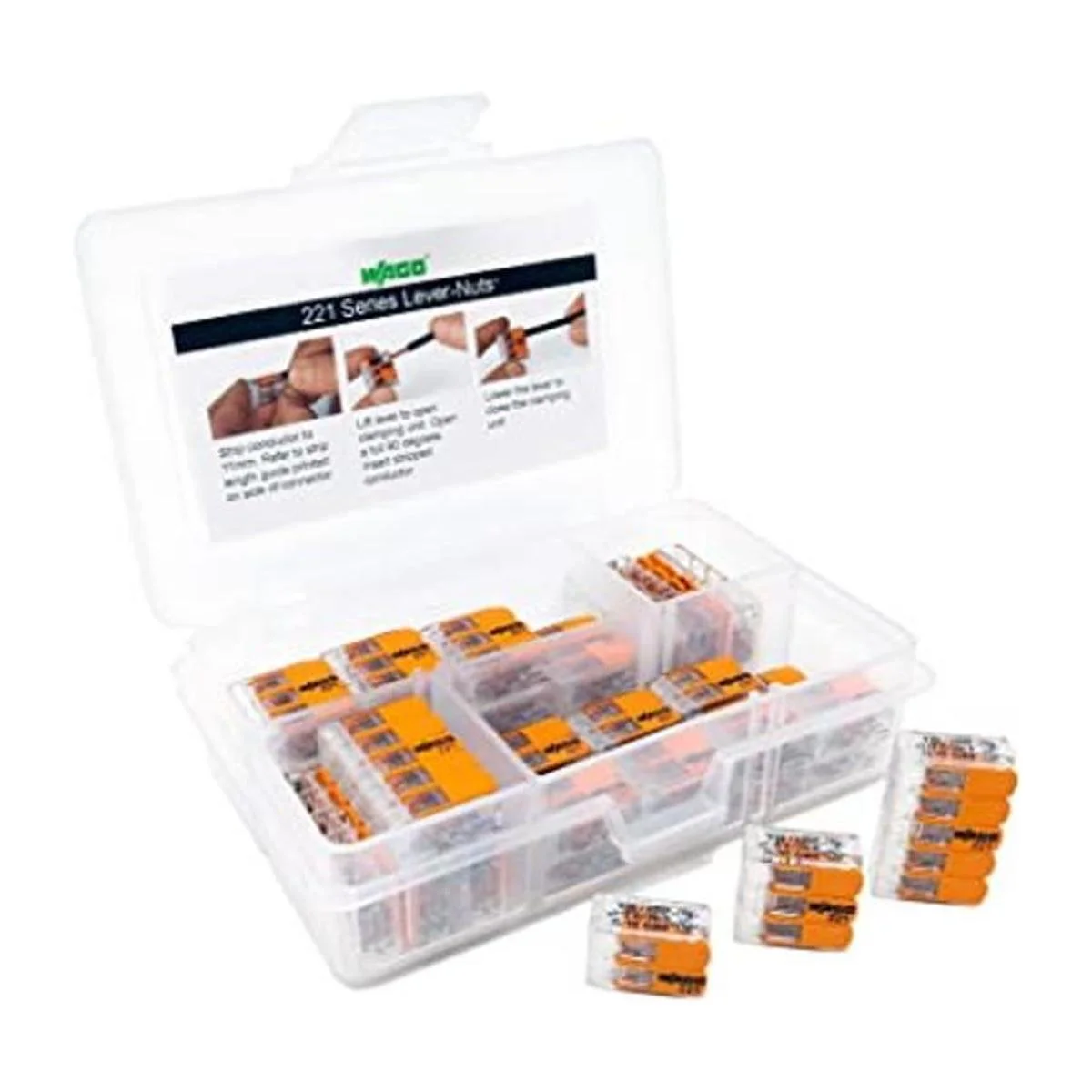 WAGO 221 LEVERNUTS 36 piezas, surtido de conectores de cable de empalme, incluye 16x 221412, 12x 221413, 8x 221415
