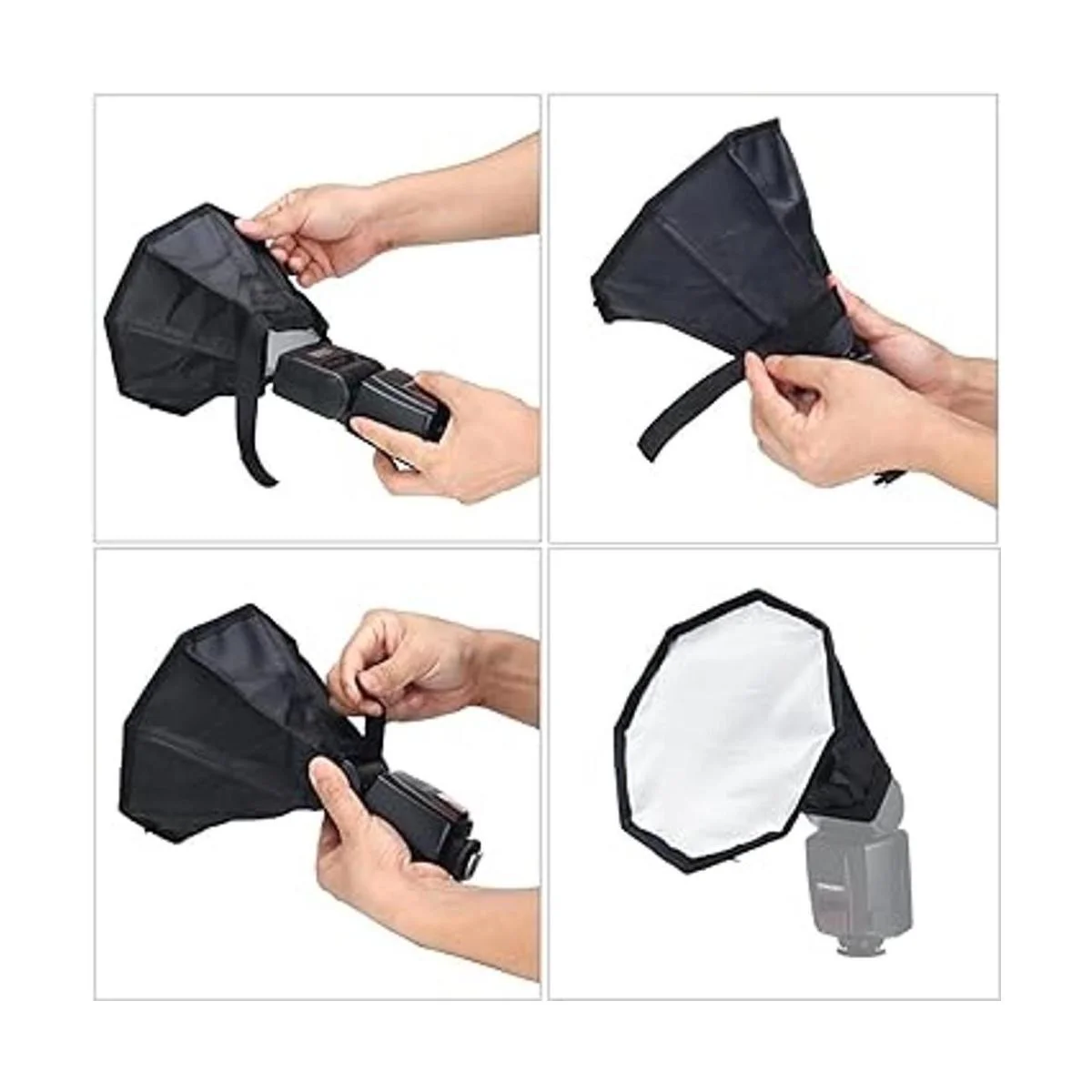 Obtén un paquete 2 en 1: viene con una caja de luz octogonal de 8 pulgadas y una caja de luz rectangular de 8 x 6 pulgadas y un paño de limpieza de microfibra para flash de cámara.