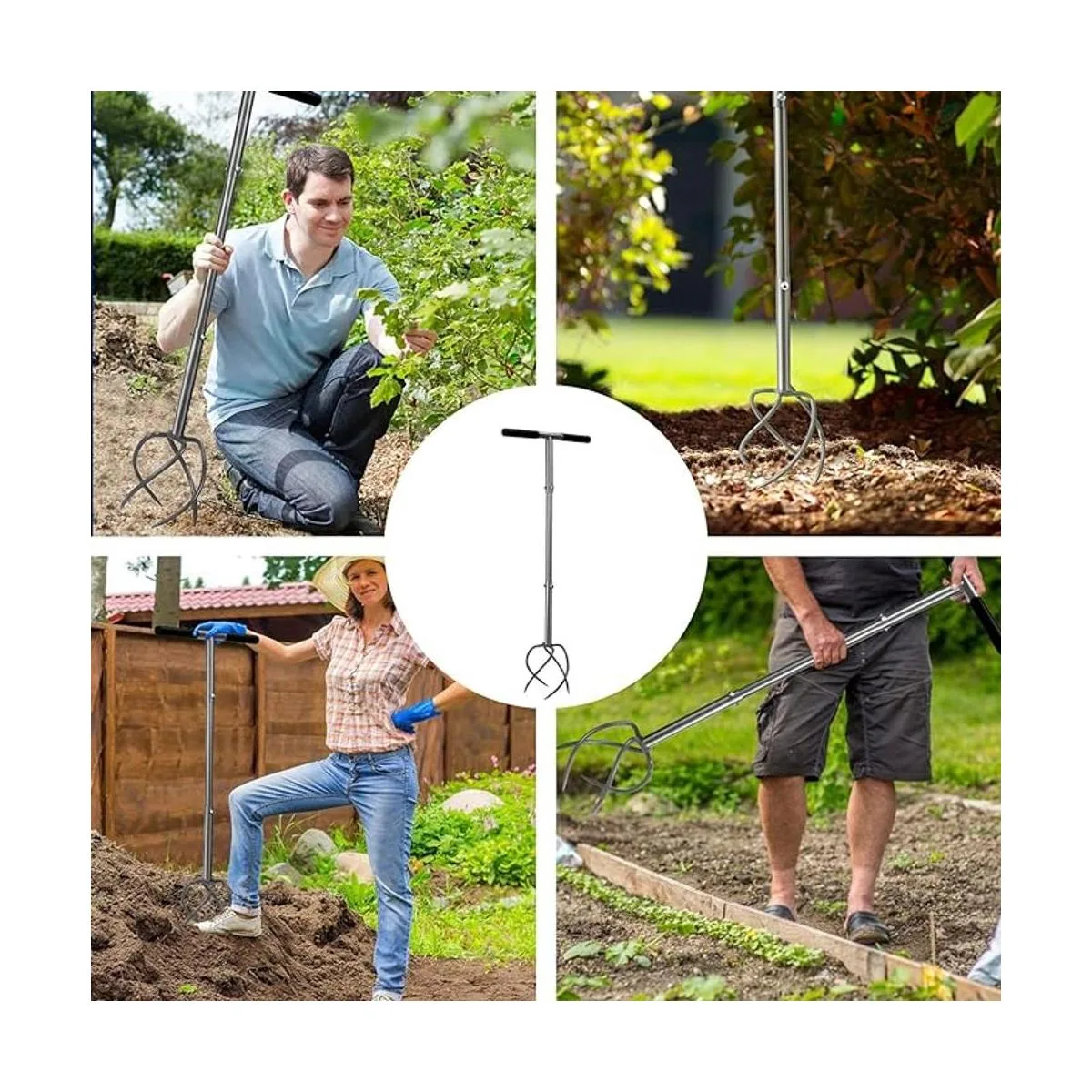 Fácil de usar: el lanzador manual es adecuado para suelos sueltos y también promueve el flujo libre de agua, aire y fertilizante para un patio y jardín más saludables y hermosos. Con las instrucciones para aflojar el suelo, solo 3 pasos para un fácil montaje: mantén el producto dos asas y deja que el diente toque el suelo; presiona hacia abajo las garras en el suelo y simultáneamente gíralas en el sentido de las agujas del reloj; tira hacia arriba de las garras. Sacudir el suelo, la hierba, las piedras. Ten en cuenta que no puede aflojar el cemento.