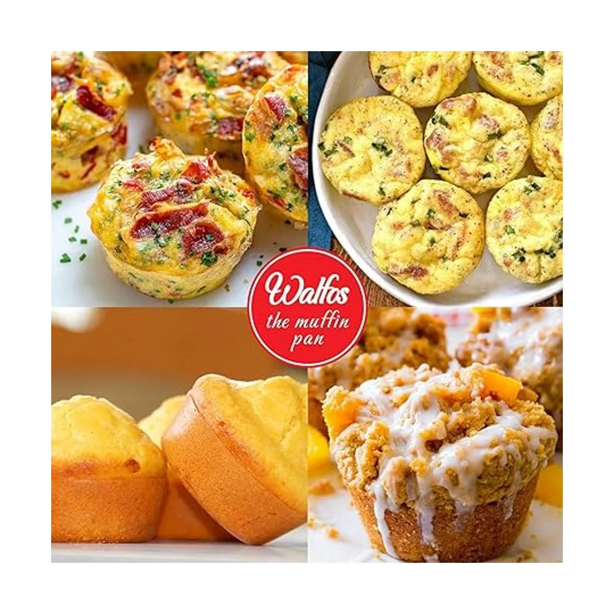 Antiadherente para hornear y fácil de limpiar: a diferencia de las sartenes de aluminio, las sartenes de la marca WALFOS no requieren revestimiento para mantenerse no pegajoso y saludable, nos aseguramos de que tengas una experiencia antiadherente. Y fácil de limpiar, se puede limpiar con agua caliente y jabón o directamente en el lavavajillas. Incluye: 1 molde para magdalenas de 12 tazas.