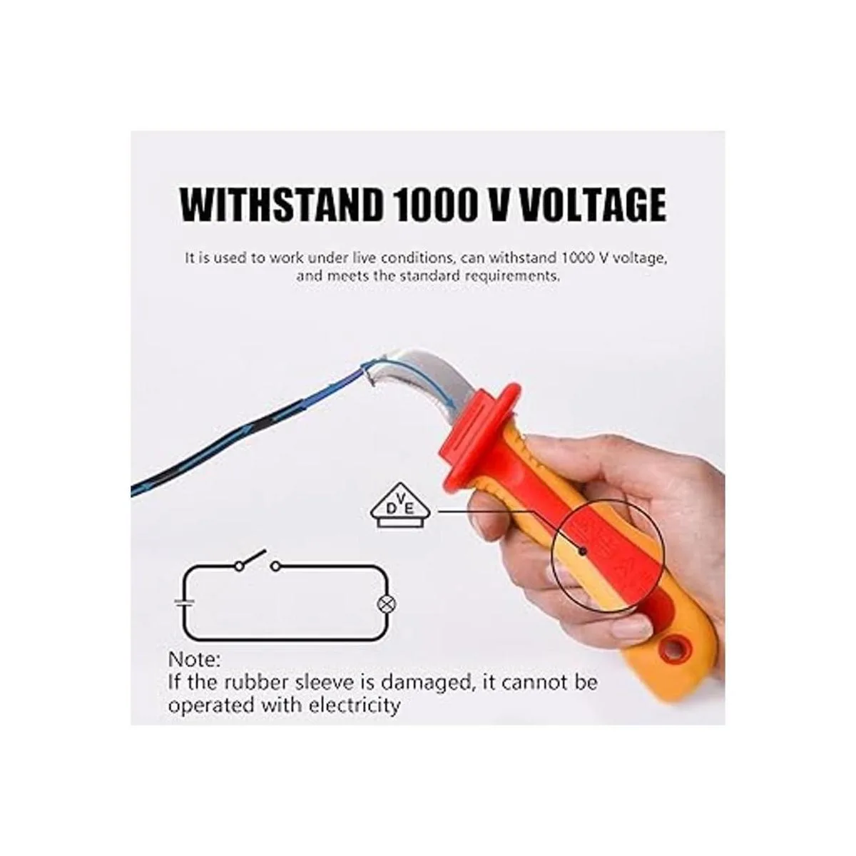Walfront Cuchillo de desmontaje de 1000 V para electricista, de tira rápida, cortador de cables, antimagnético, cuchillas para electricista, 8.268 in