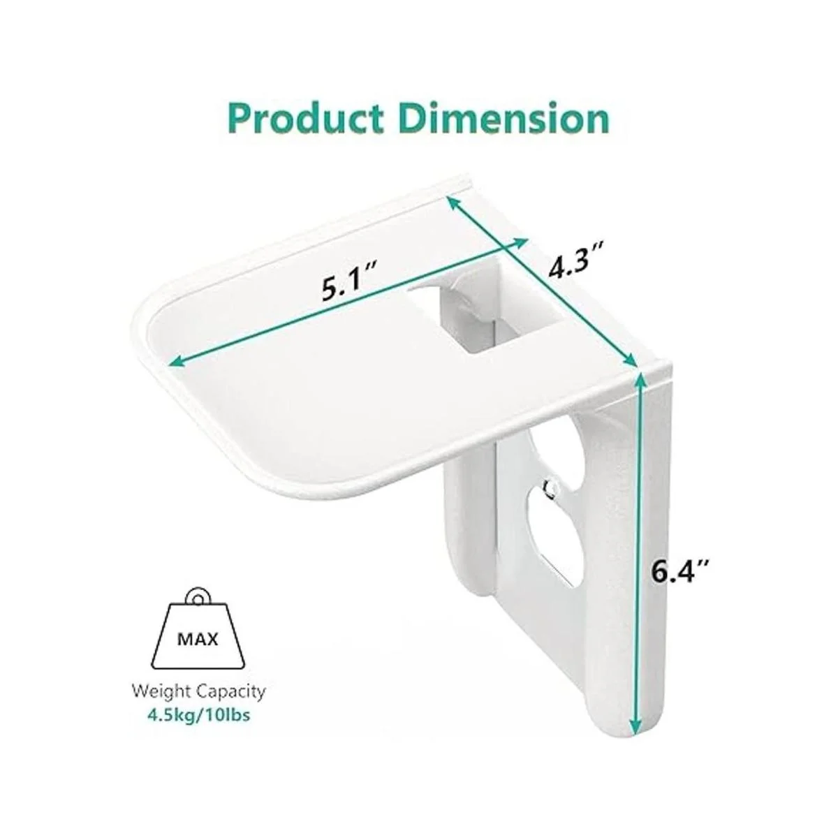 Ergonomic Design: Use an existing outlet to create an additional shelf that is 4.3 wide and 5.1 deep. Sturdy platform supports up to 10 lbs 4.5 kg.