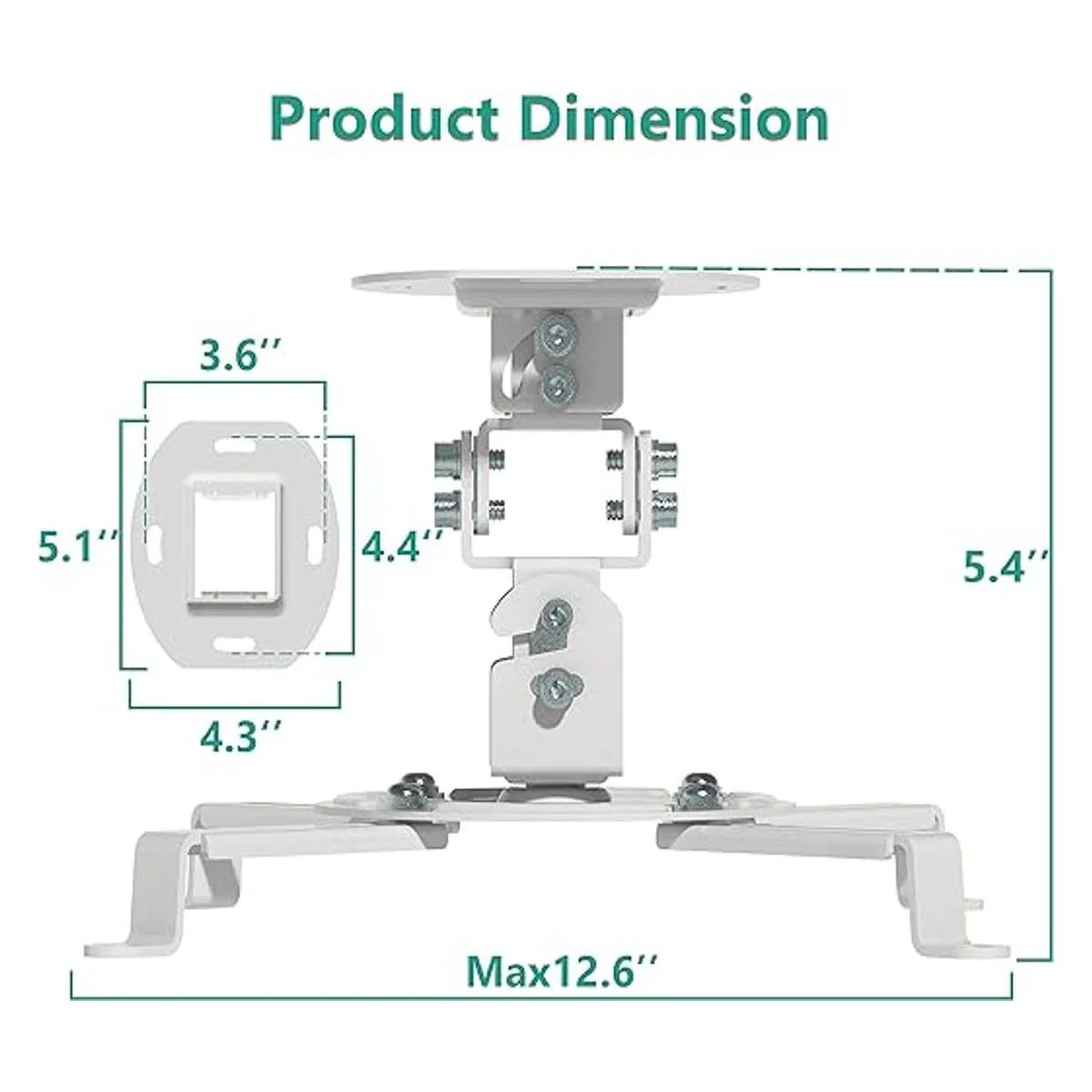 Compatibilidad: el soporte de proyector se adapta a la mayoría de los proyectores del mercado, compatible con agujeros de montaje de distancia entre 2 y 12.5 pulgadas.