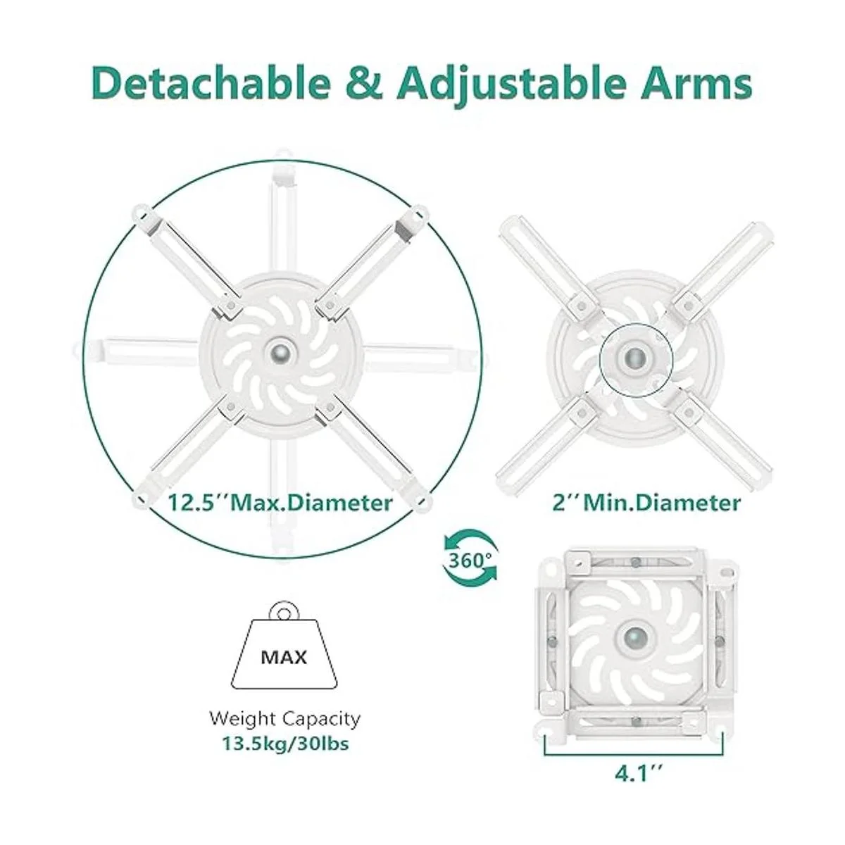 Fácil instalación: liberación rápida y fijación del soporte al techo facilita la instalación. Se monta en pernos de madera, superficies de hormigón y pared, techo plano, techo caído, techo suspendido, etc.