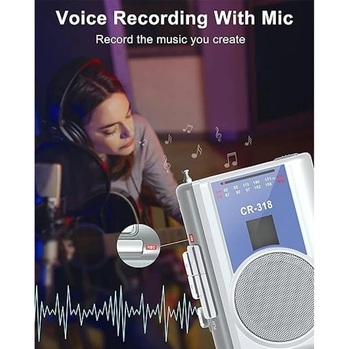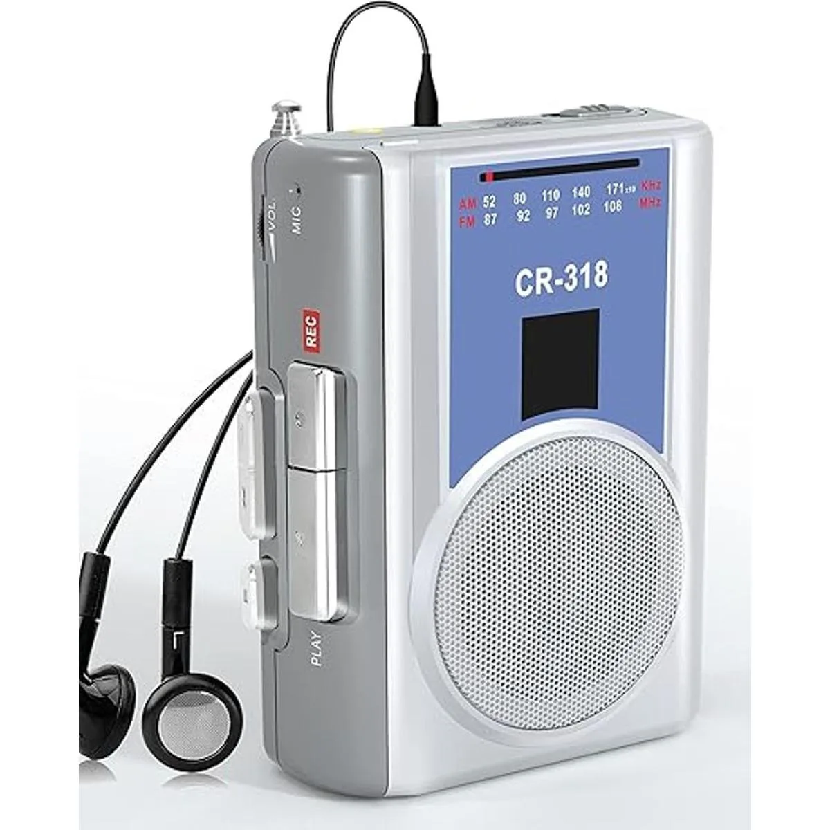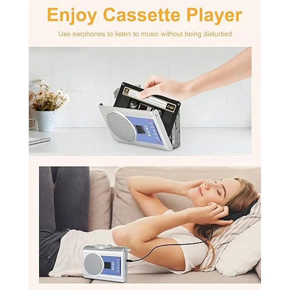 Walkman Grabadora de casete con AM FM, reproductor de cinta de casete vintage portátil con conector para auriculares, micrófono integrado, altavoz fuerte para caminar, trotar