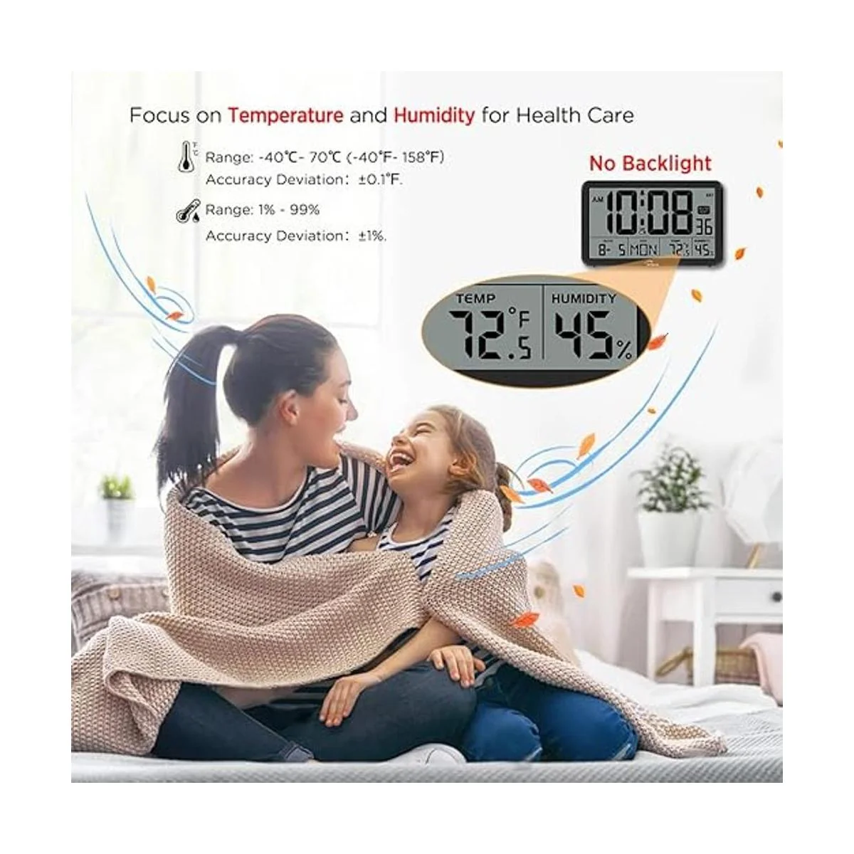 Reloj de pared digital con temperatura y humedad: estos relojes de pared digitales están equipados con sensores de detección SHTC3 suizos de alta precisión, te ayudan a dominar la temperatura interior y la humedad más precisos y crear el ambiente interior más cómodo.