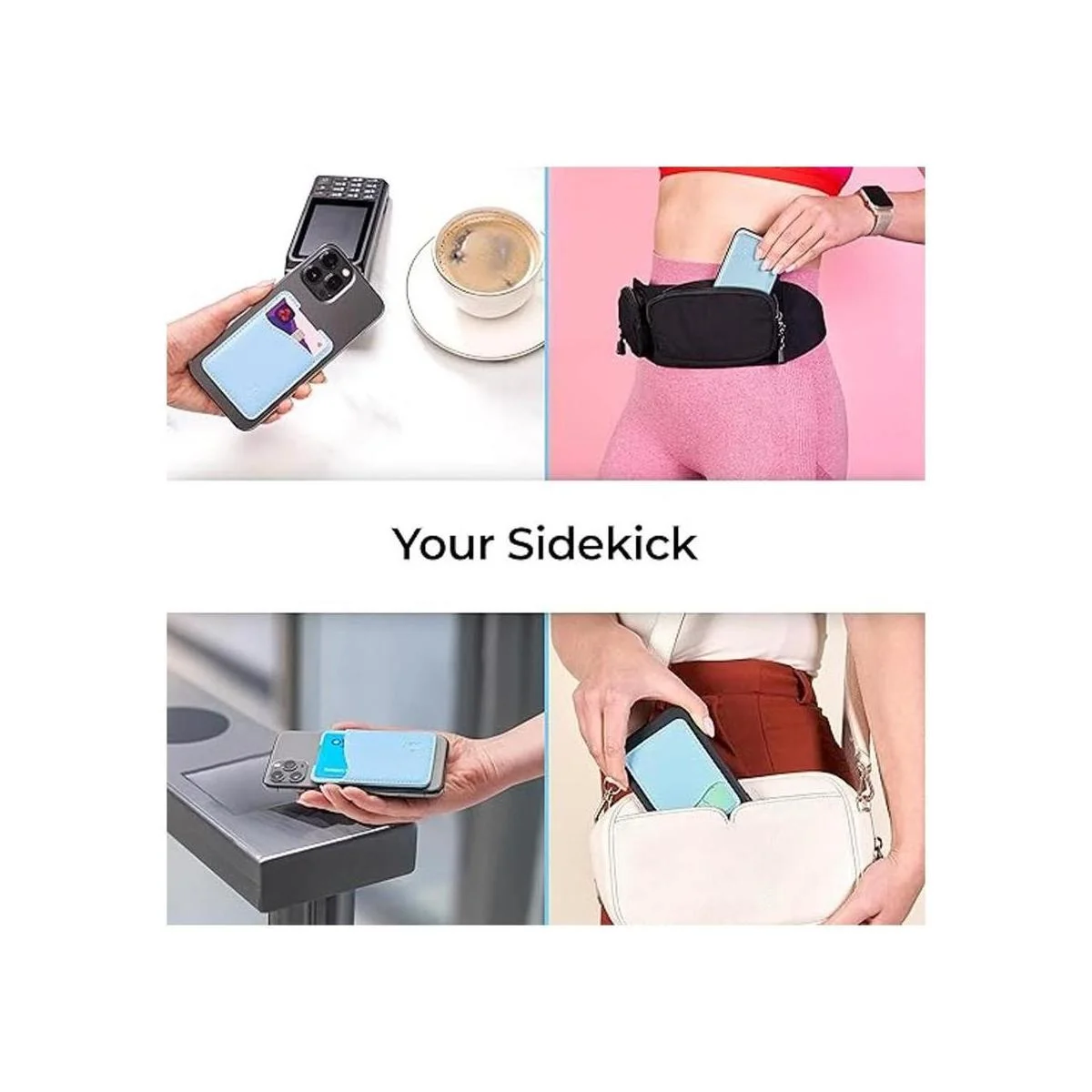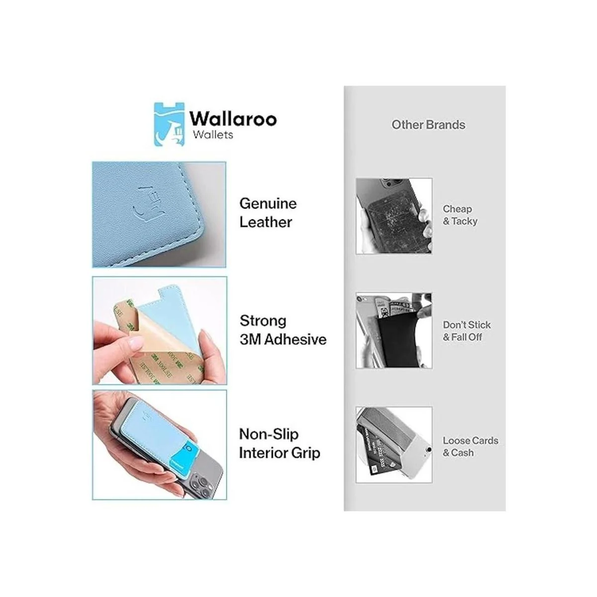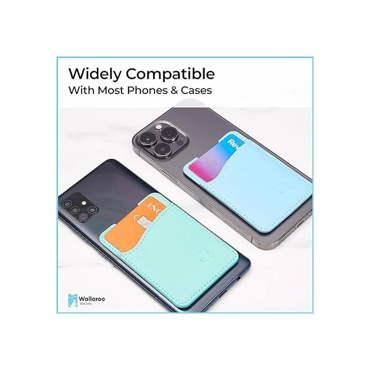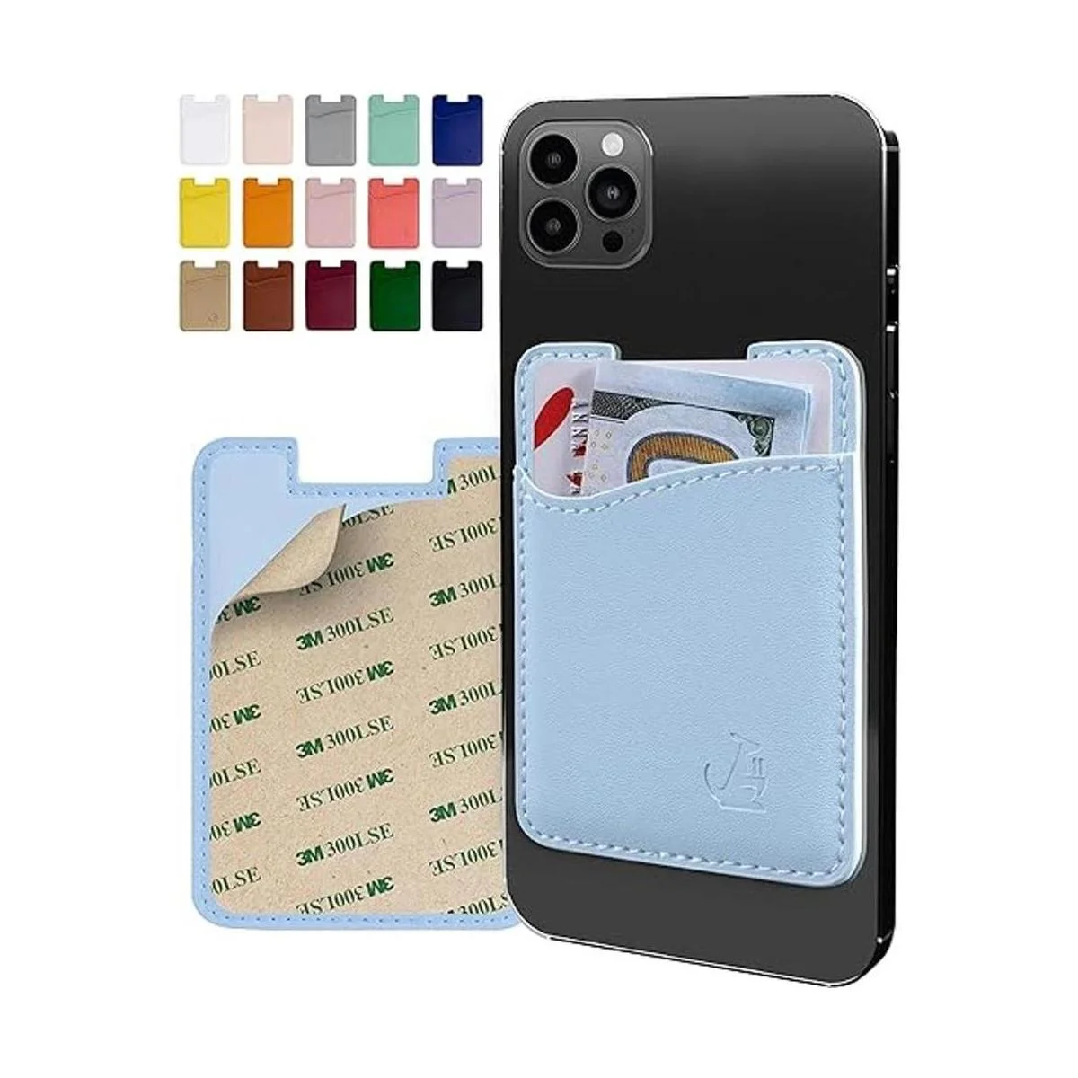 Wallaroo Tarjetero de cuero adhesivo para iPhone y smartphones Android, Piel azul pastel