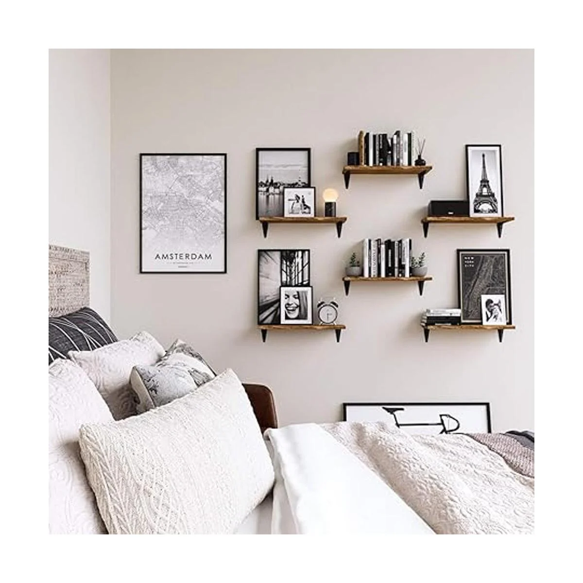 Wallniture Arras Estantes flotantes para pared, estantes de pared de madera para decoración de dormitorio, juego de 6