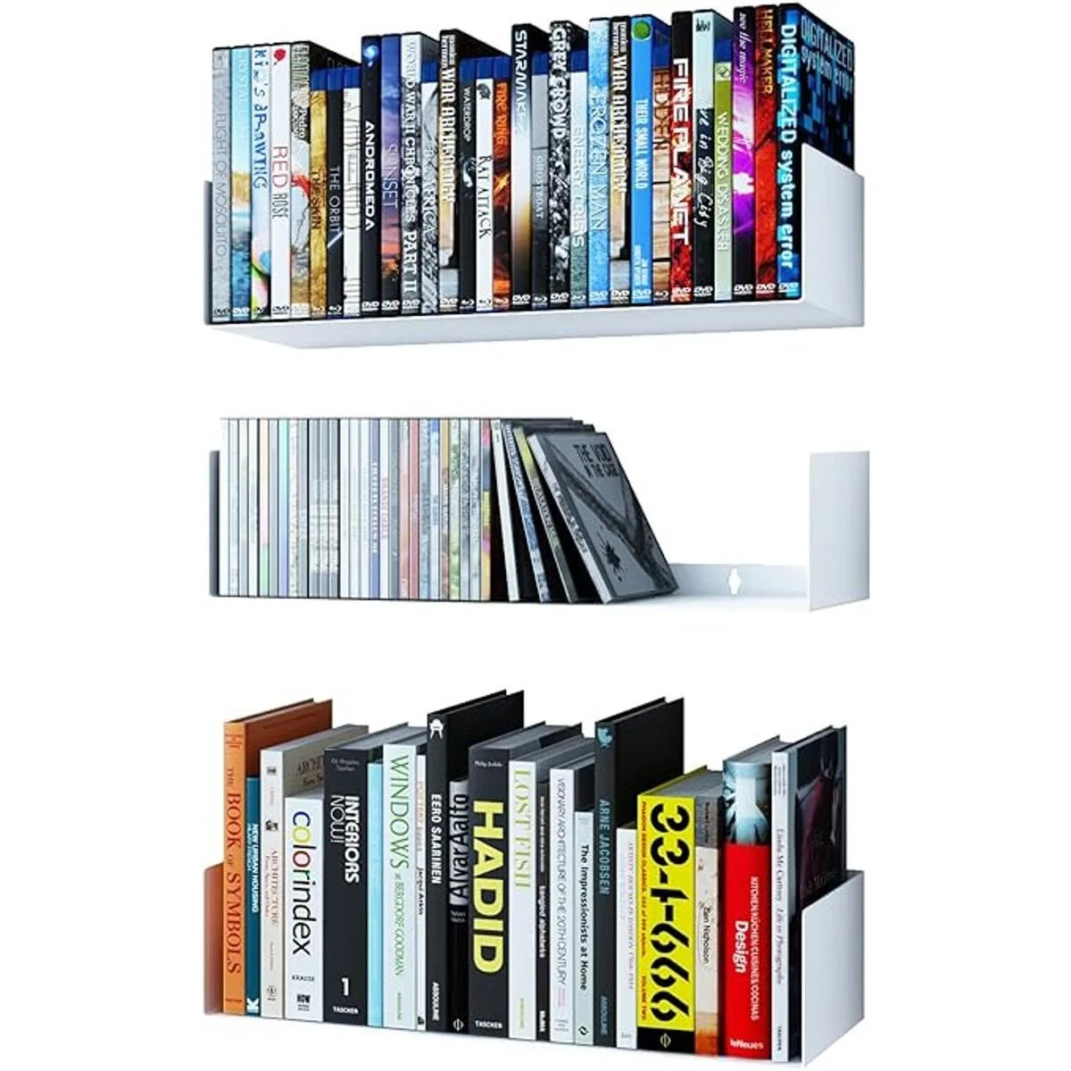Wallniture Bali Estantes flotantes blancos para pared, estantes de almacenamiento de CD DVD y estantería de metal, juego de 3
