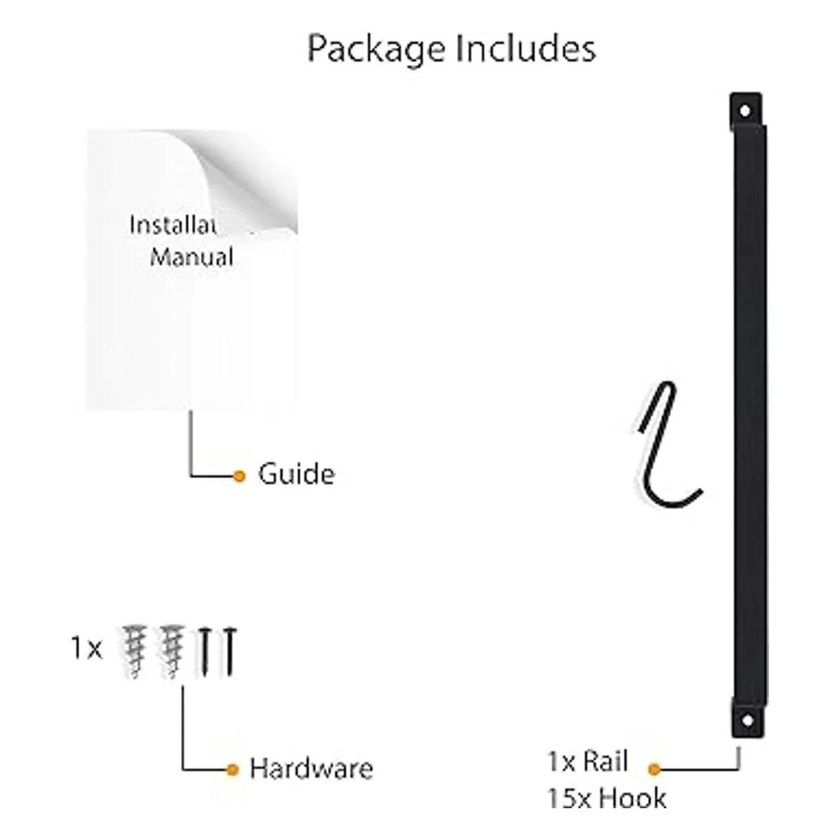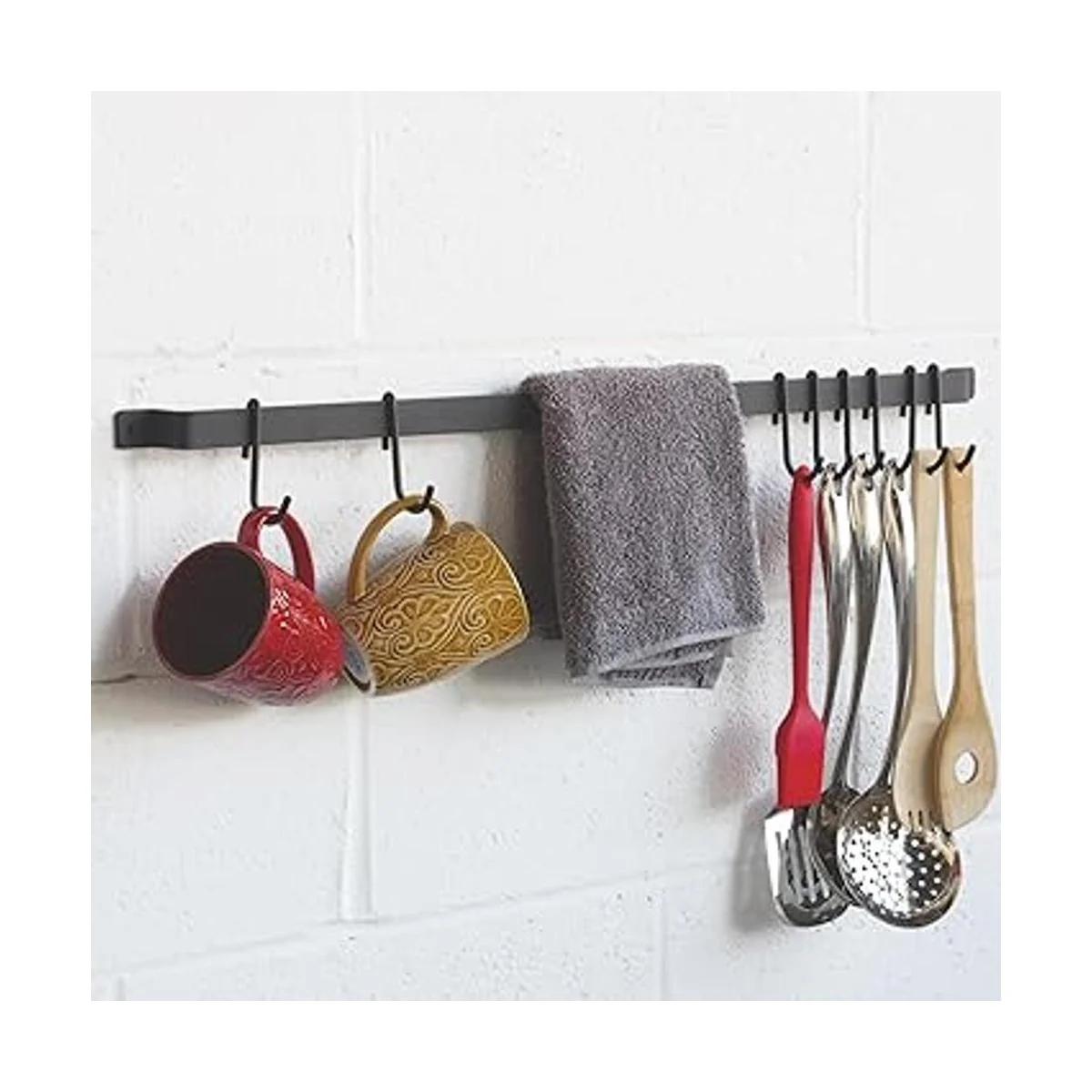 Wallniture Casto Riel de cocina gourmet de 30.0 in con 15 ganchos en S para colgar utensilios de cocina y utensilios de cocina, hierro, negro escarchado
