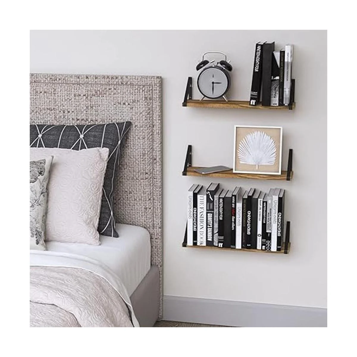 Almacenamiento y visualización resistentes: este juego de estantes flotantes de pared consta de madera maciza de alta calidad y soportes de metal. Las tablas de madera de paulownia y los soportes de metal con recubrimiento en polvo están diseñados para durar años. Cada uno de estos estantes de almacenamiento resistentes tiene dimensiones de 16.9 in de largo x 4.7 in de ancho x 4.7 in de alto