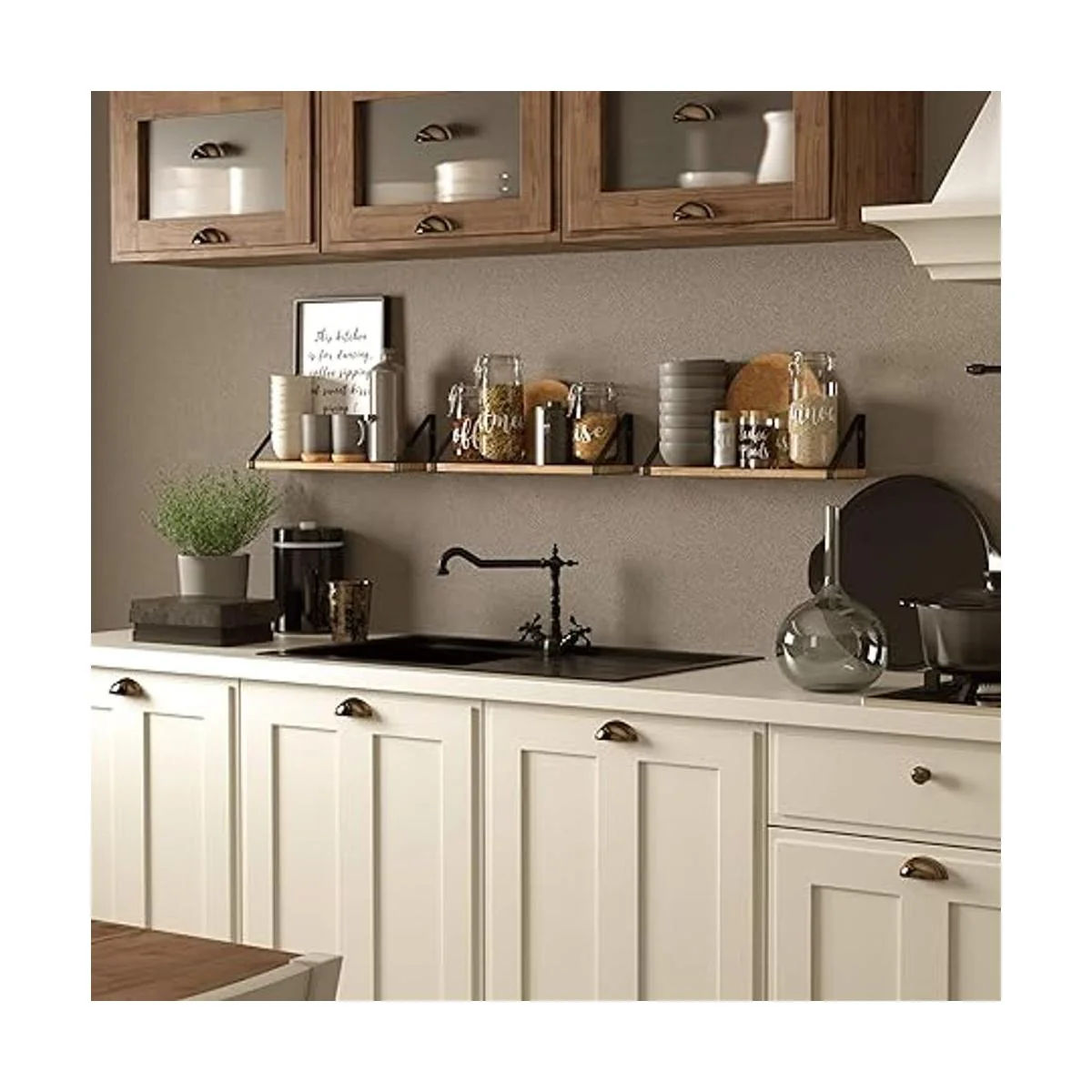 Wallniture Estantes flotantes Ponza para pared, lavadero y cuarto de baño, juego de 3, decoración de pared de madera rústica con soporte de metal flotante