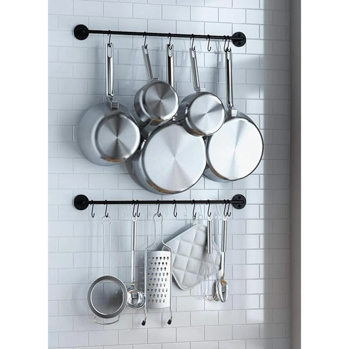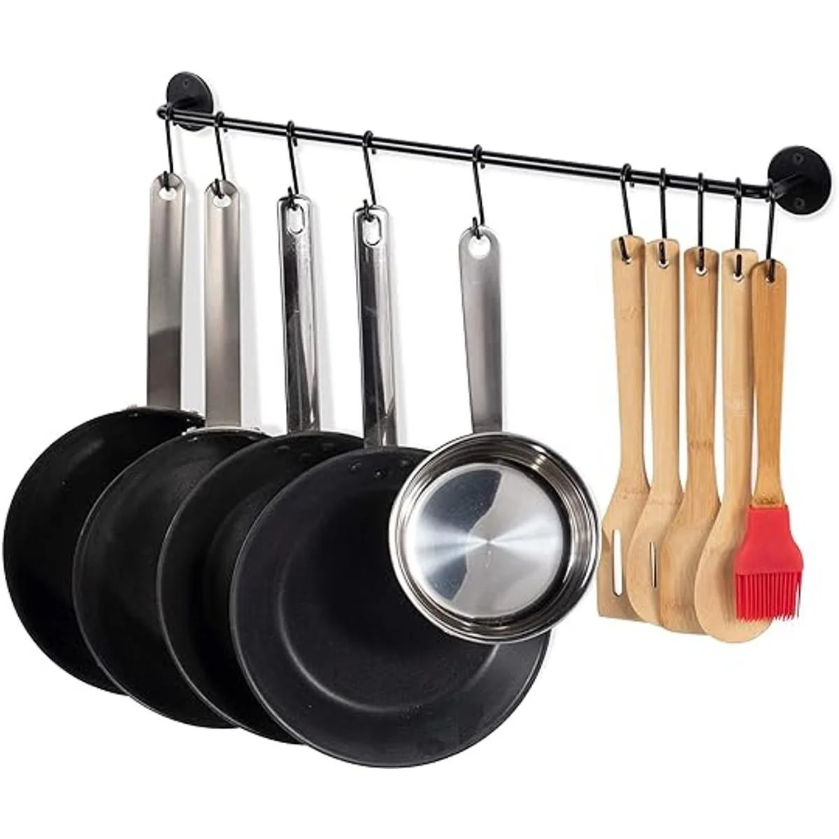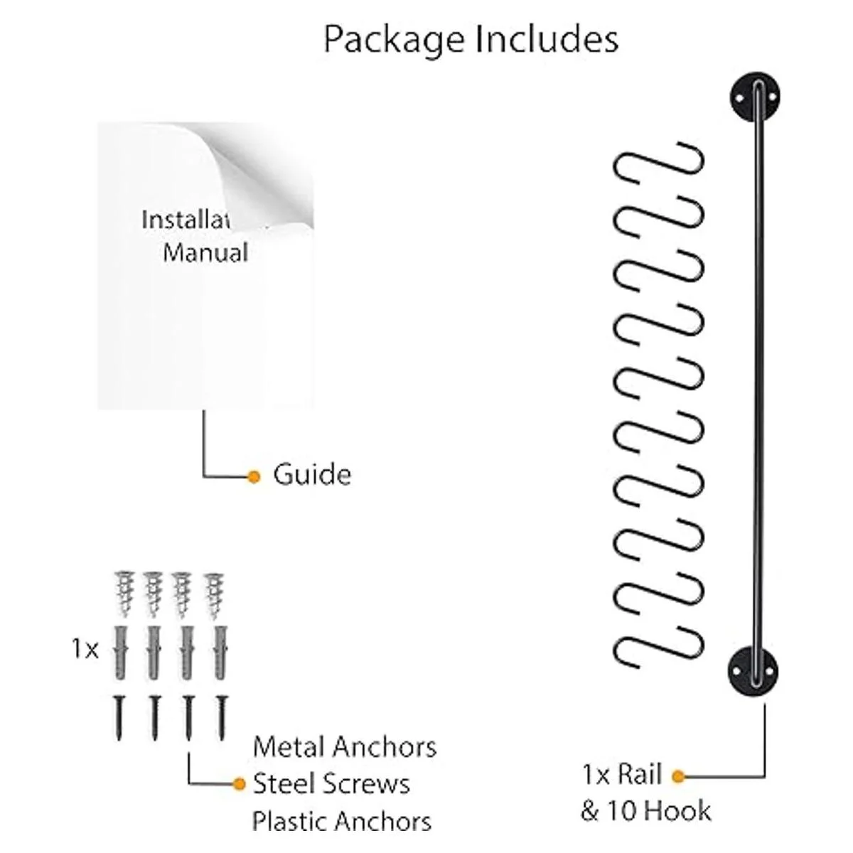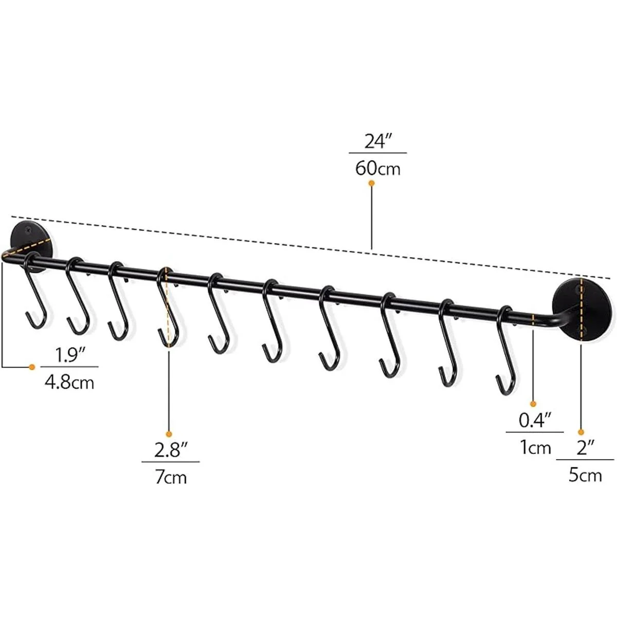 Wallniture Juego de rieles de pared para cocina gourmet de acero de 24.0 in y 10 ganchos en forma de S para utensilios de cocina, color negro