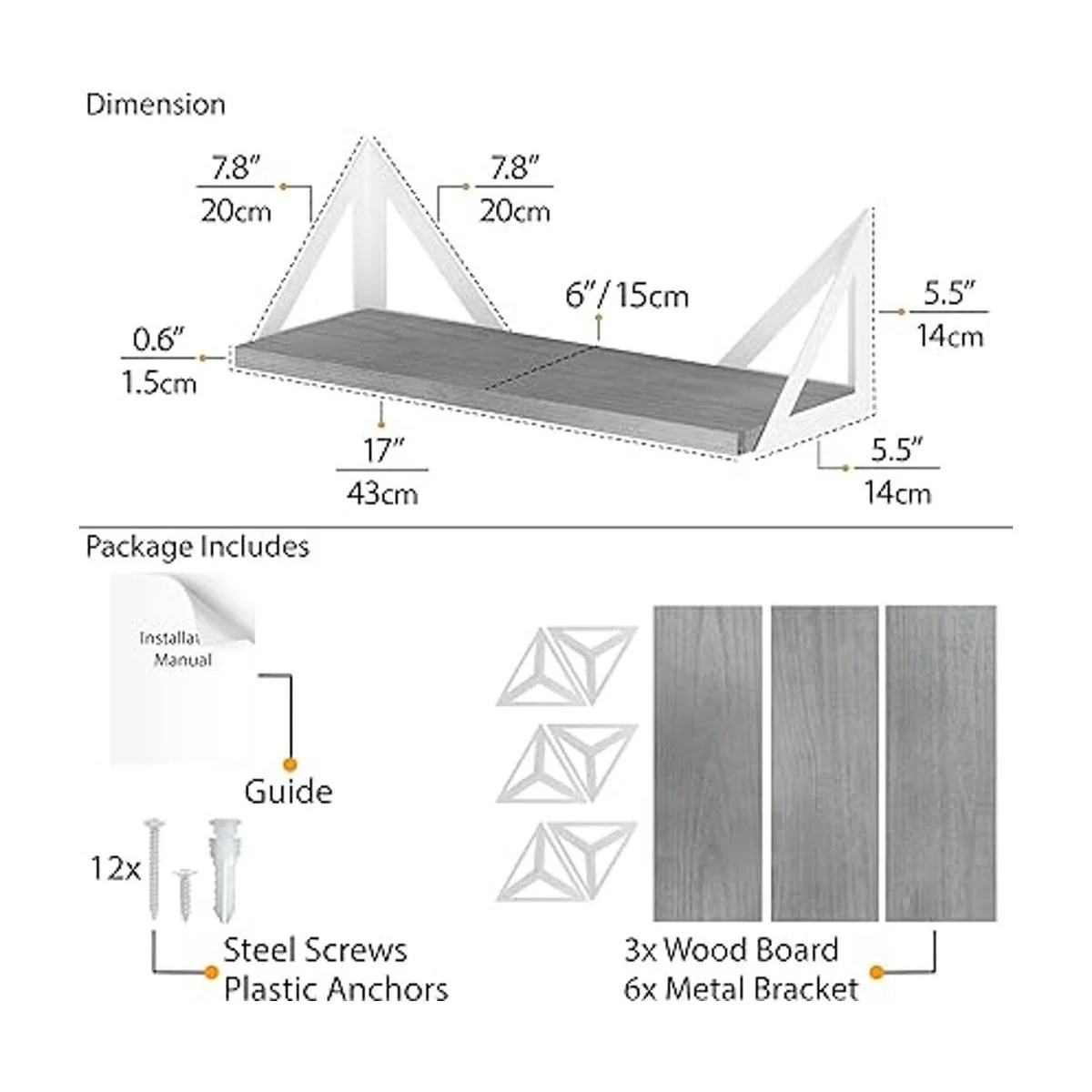 Funciona bien con todos los espacios: hecho de madera maciza de paulownia de alta calidad, el juego de 3 estantes triangulares Minori montado en la pared ha diseñado para combinar perfectamente con cada diseño y estilo interior. Nuestro estante flotante montado en la pared será un toque complementario no solo a tu decoración moderna, sino también a la decoración rústica, decoración de granja y decoración bohemia