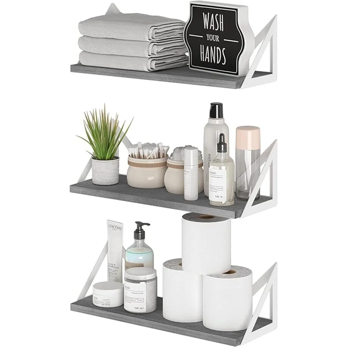 Wallniture Minori Estantes flotantes grises para pared, estantes de baño para almacenamiento sobre el inodoro, estantes de pared de madera para dormitorio, sala de estar, cocina, juego de 3