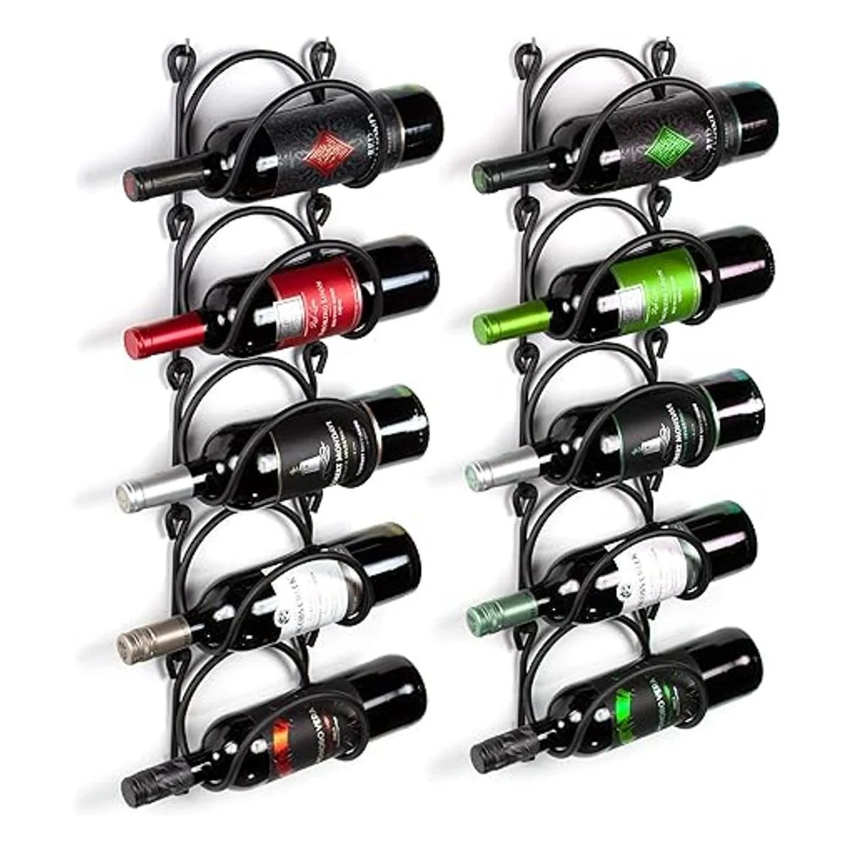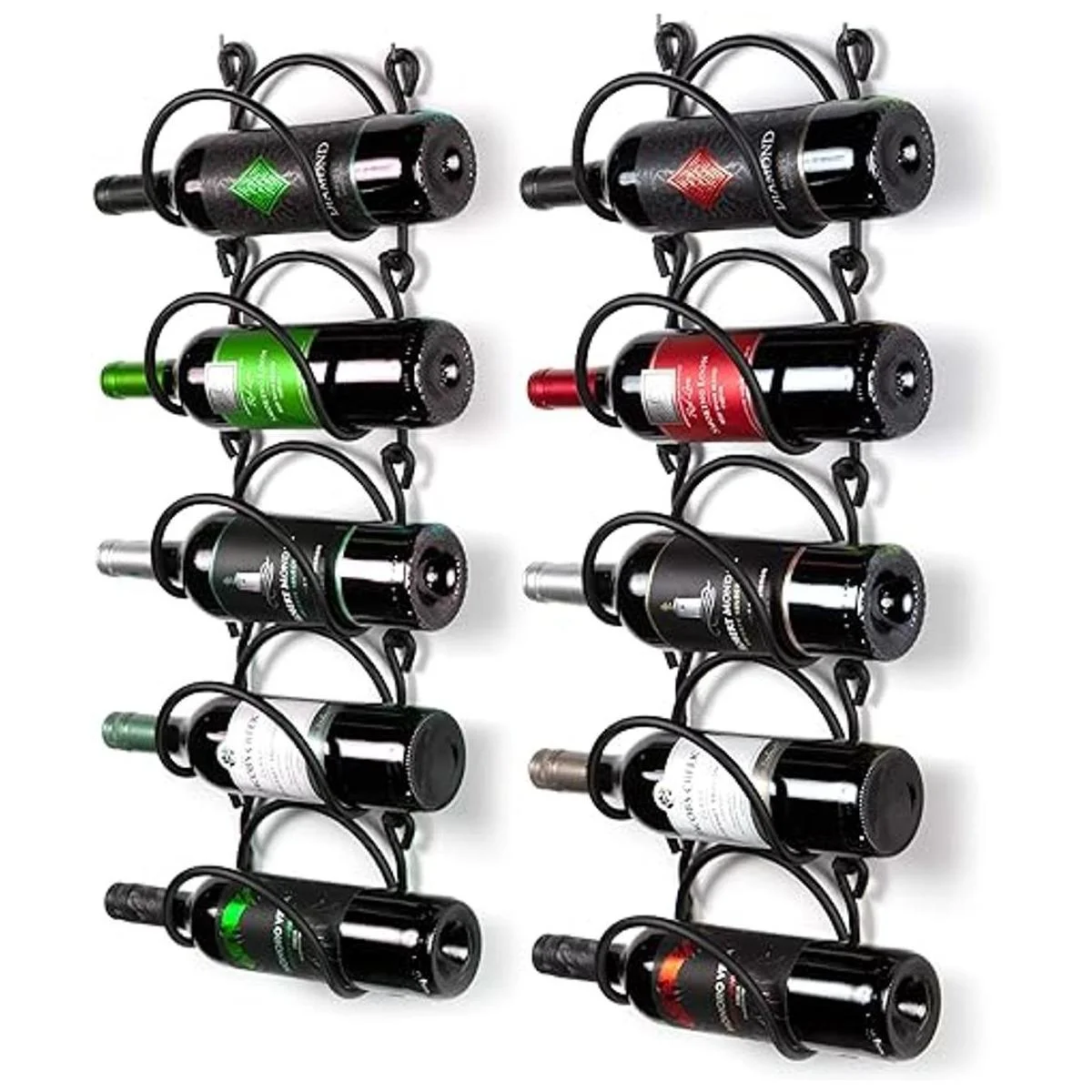 Visualización moderno: con su ingenioso diseño negro, este juego de botelleros de vino será un complemento perfecto para la decoración de tu cocina con temática de vino. En lugar de estantes voluminosos, monta estos estantes para botellas de vino en la parte superior de tu gabinete, en tu carrito de bar o en cualquier lugar que desees.