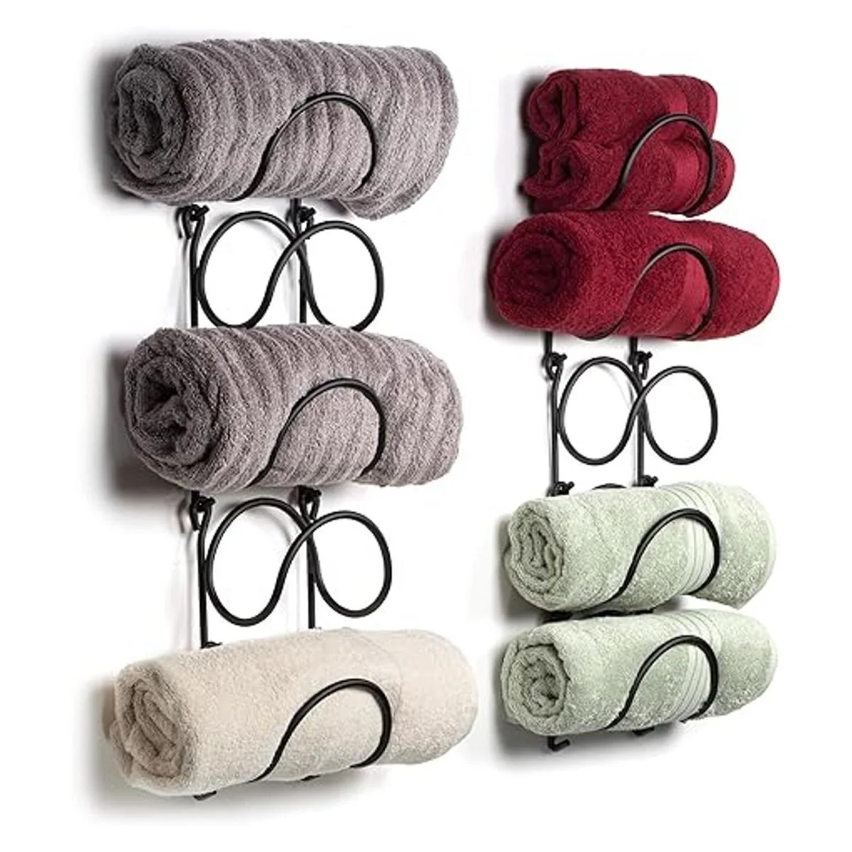 Multifuncional: este juego de 10 soportes para botellas de hierro se puede utilizar debajo de cualquier estante, buffet o armario y te ayuda con la organización y almacenamiento del hogar. Utilízalo para colocar tus rodillos, esterillas de yoga, sábanas, toallas y mucho más.