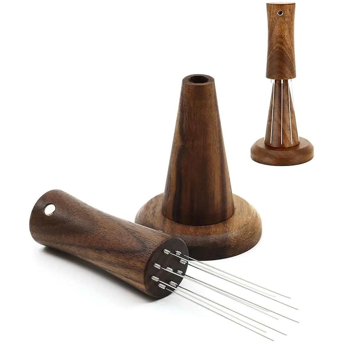 WALNUT COFFEE WDT Tool Soporte autoalineable y mango magnético integrado, agitador de café expreso de nogal, herramienta de distribución de agujas espresso para baristas profesionales