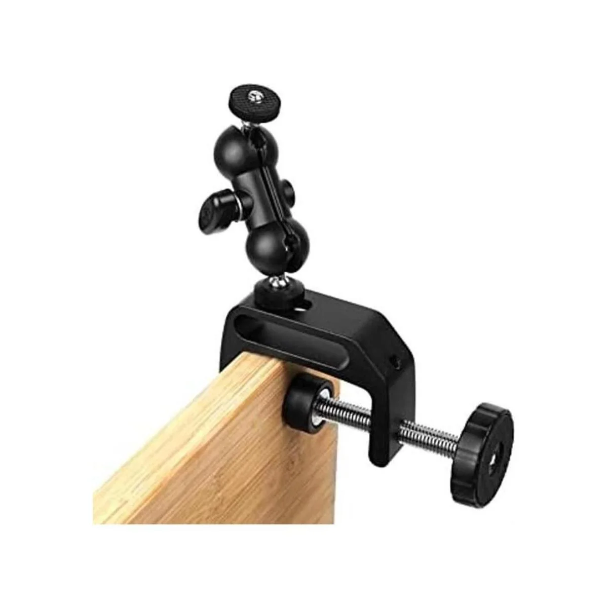 Alta calidad Hecho de aluminio sólido aeronáutico. Este es un cabezal de bola doble multifunción con súper abrazadera inferior y tornillo roscado de trípode de 1/4 pulgadas para montar monitores y luces LED a DSLR.