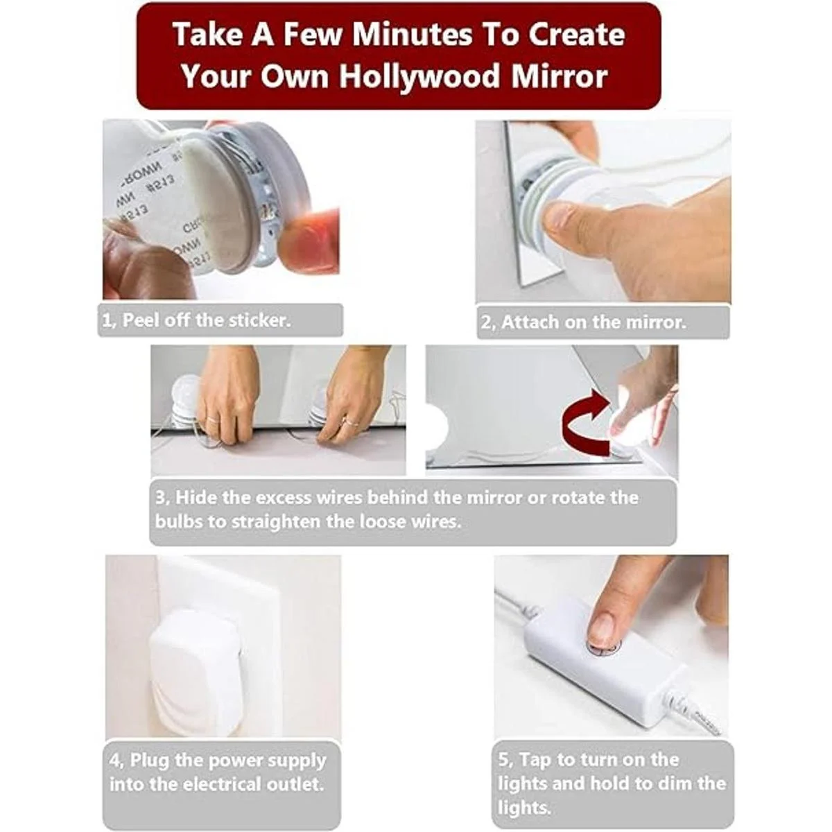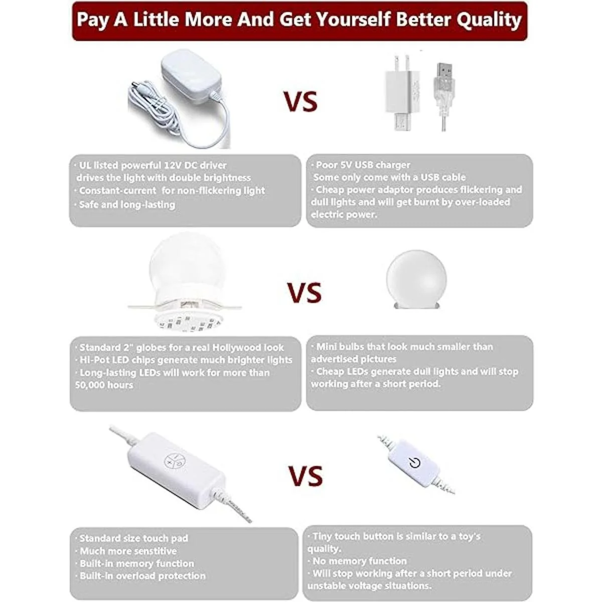 10 bombillas LED producen una luz suave y brillante Glow. 6000 K blanco simula natural luz del sol, proporcionando un color de iluminación profesional para maquillaje.