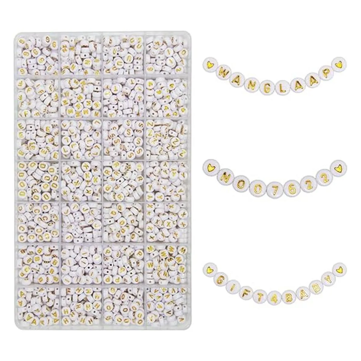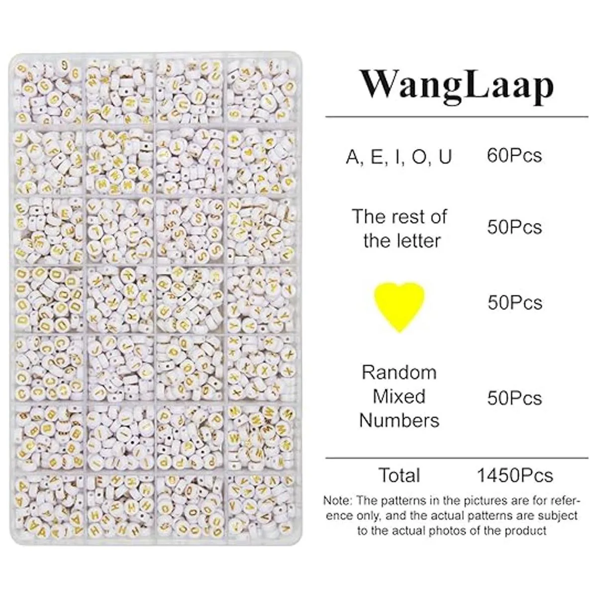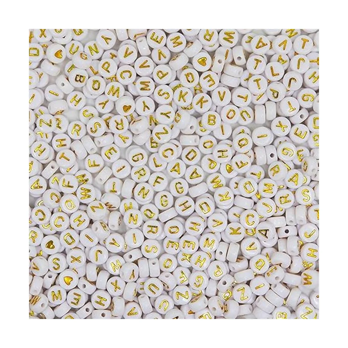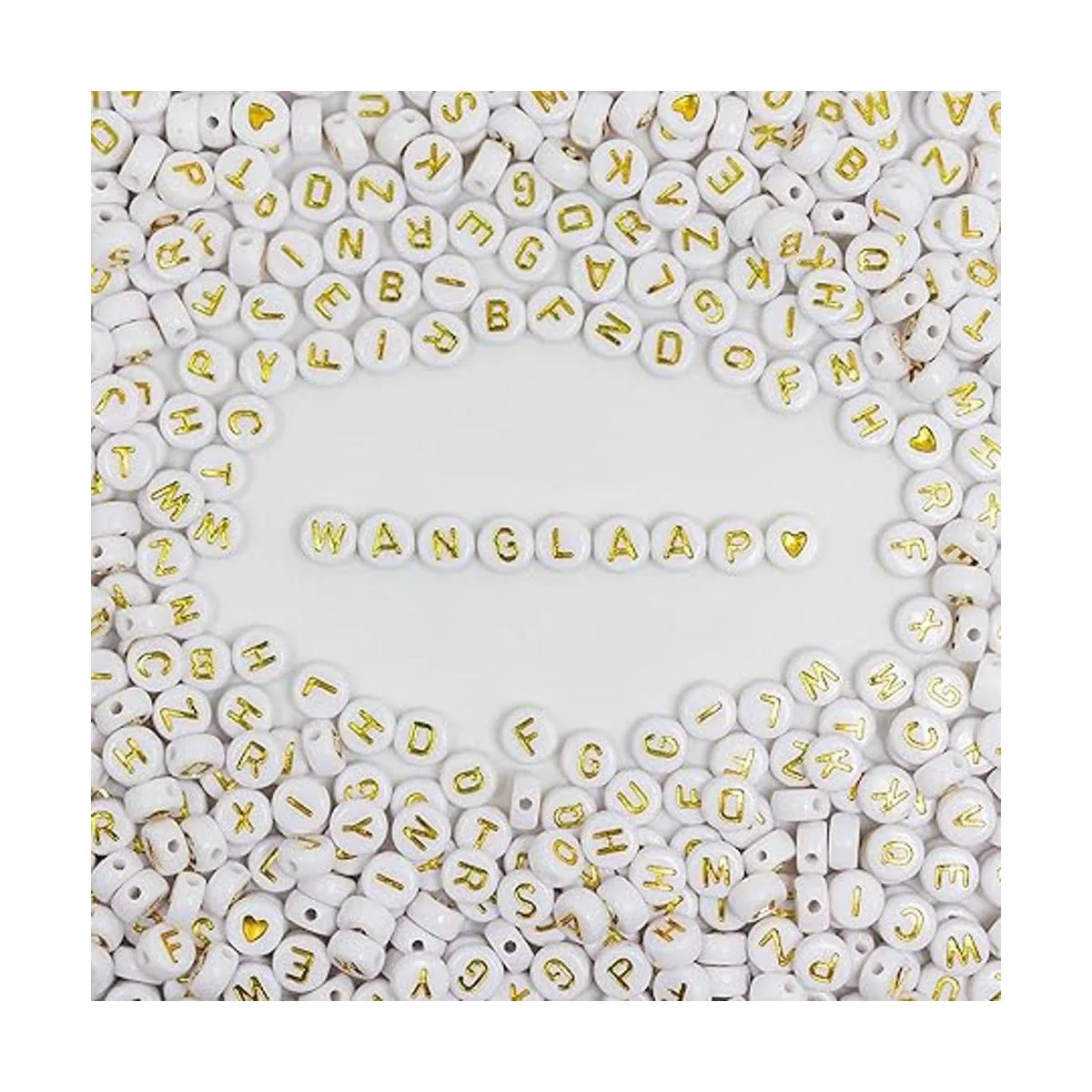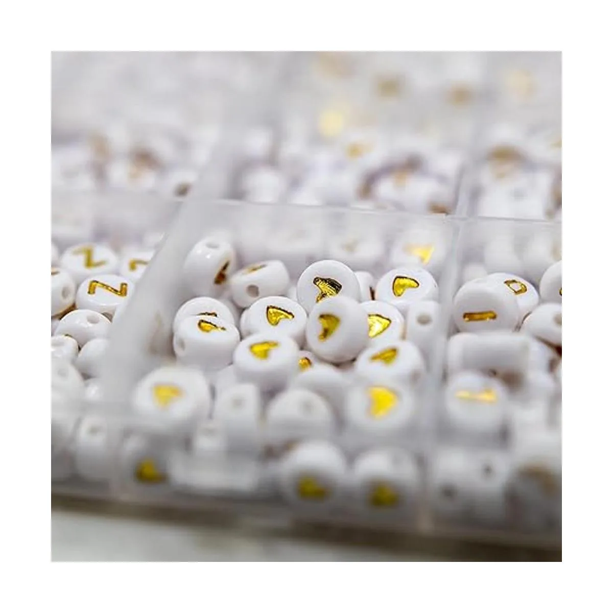 Tamaño y cantidad: El diámetro de las cuentas es de 0.27 pulgadas y el grosor es de 0.16 pulgadas. Puedes obtener 1450 cuentas, que incluyen las 26 letras, corazones dorados y números aleatorios mezclados. Hay 50 unidades por cada tipo de cuenta, y 10 cuentas adicionales por cada vocal. Las cuentas son de color blanco, las letras y los corazones son dorados, los cuales son colores muy brillantes, podrás mostrar fácilmente tu estado de ánimo o mezclarlas con otros tipos de cuentas.