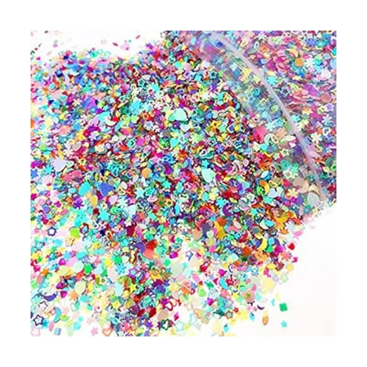 Wankko Confeti con purpurina multicolor de 7.2 oz200 g, formas mixtas de 2 a 0.157 in para decoración de fiestas, manualidades de bricolaje, arte de uñas de primera calidad, etc