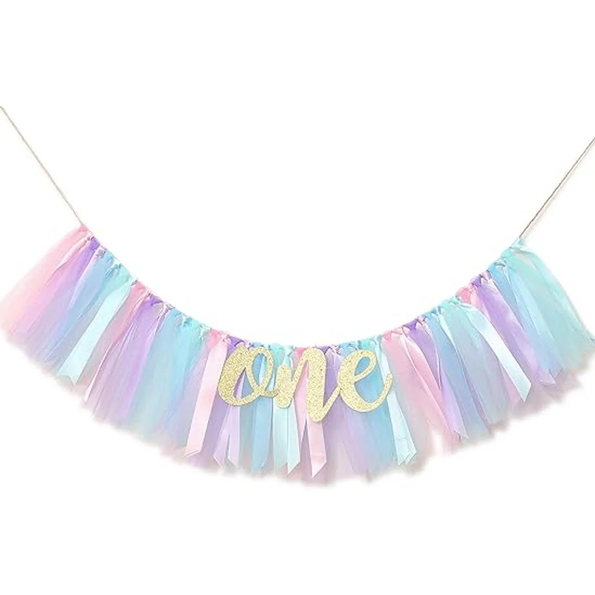 La pancarta de cumpleaños soy una hermosa pancarta de trona, nacida en el duro trabajo de los trabajadores, estoy compuesta de tul y cinta. Soy un producto que cuidadosamente trae sorpresa para la fiesta de cumpleaños del bebé.