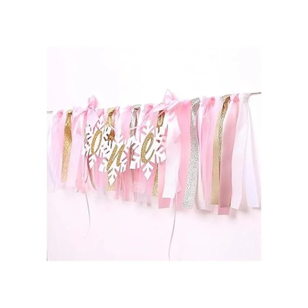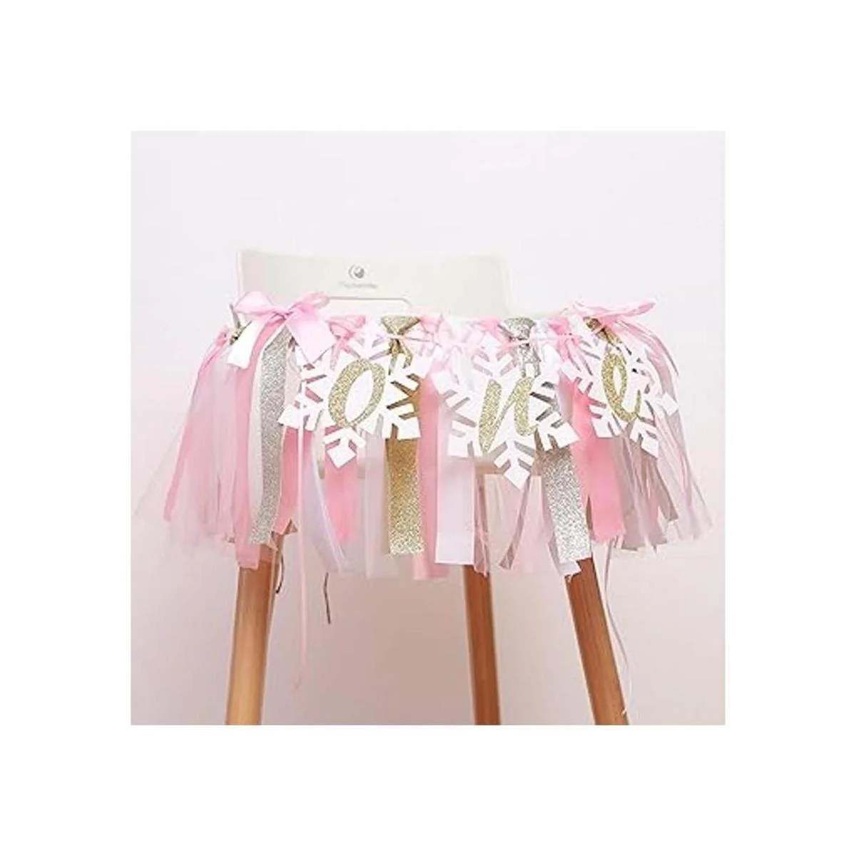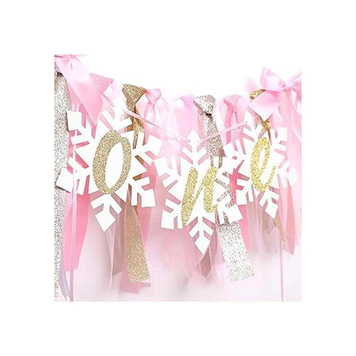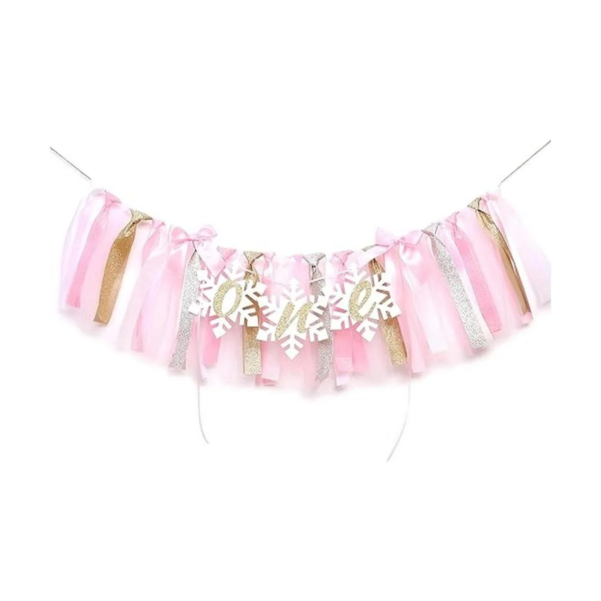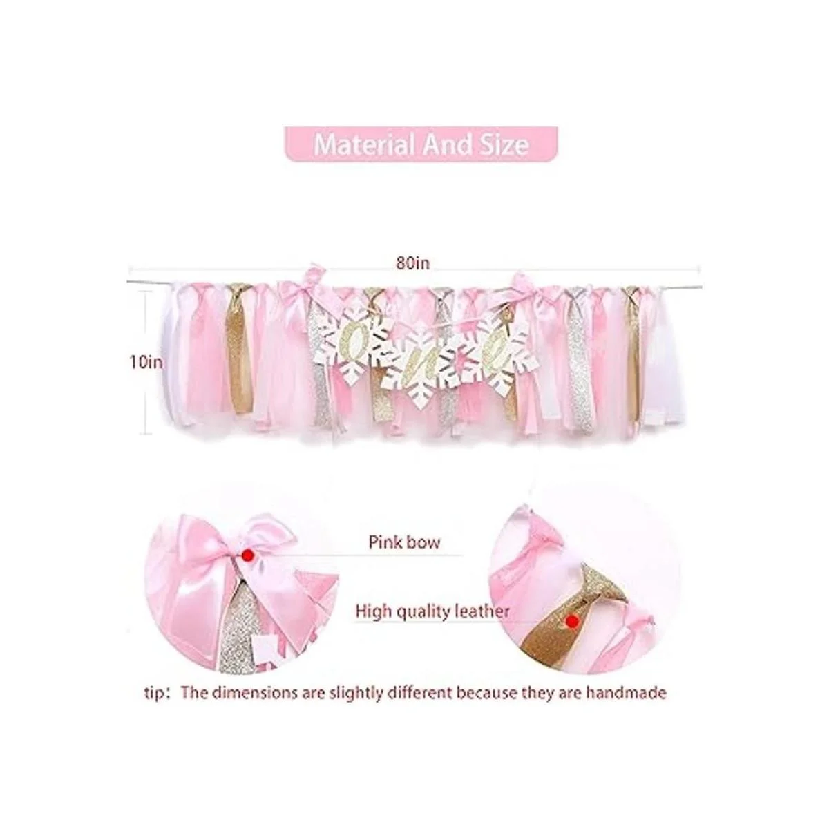 WAOUH Cartel de Winter Alderland para primer cumpleaños Cartel de silla alta para decoración de primer cumpleaños, accesorio de fotos de pastel aplastado, pancarta de guirnalda de trapo de tela, tema de hielo y nieve pancarta de Alderland de invierno rosa