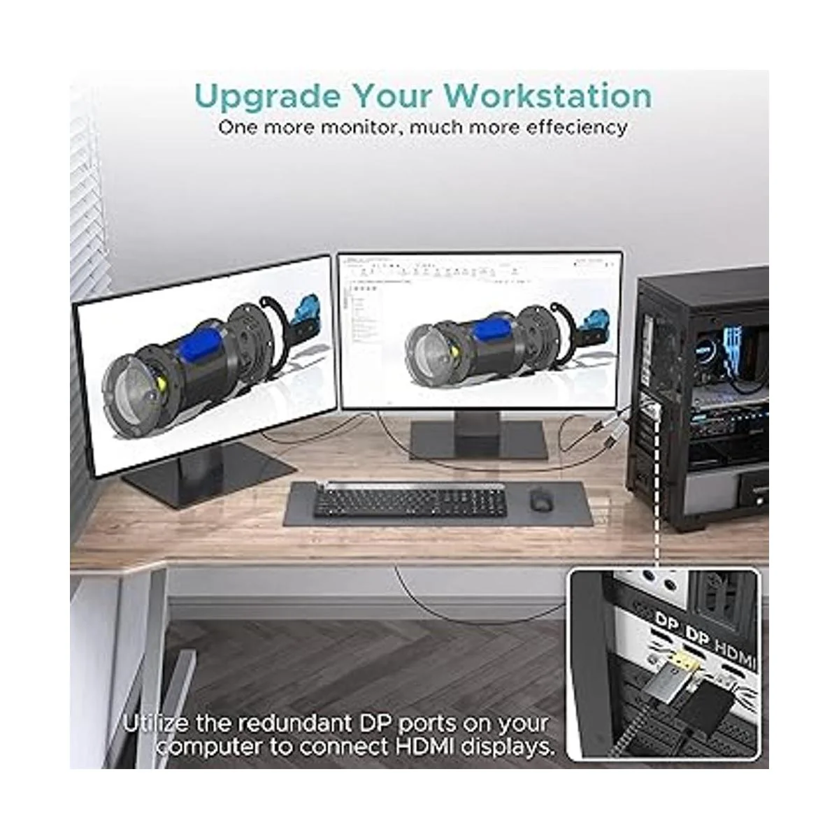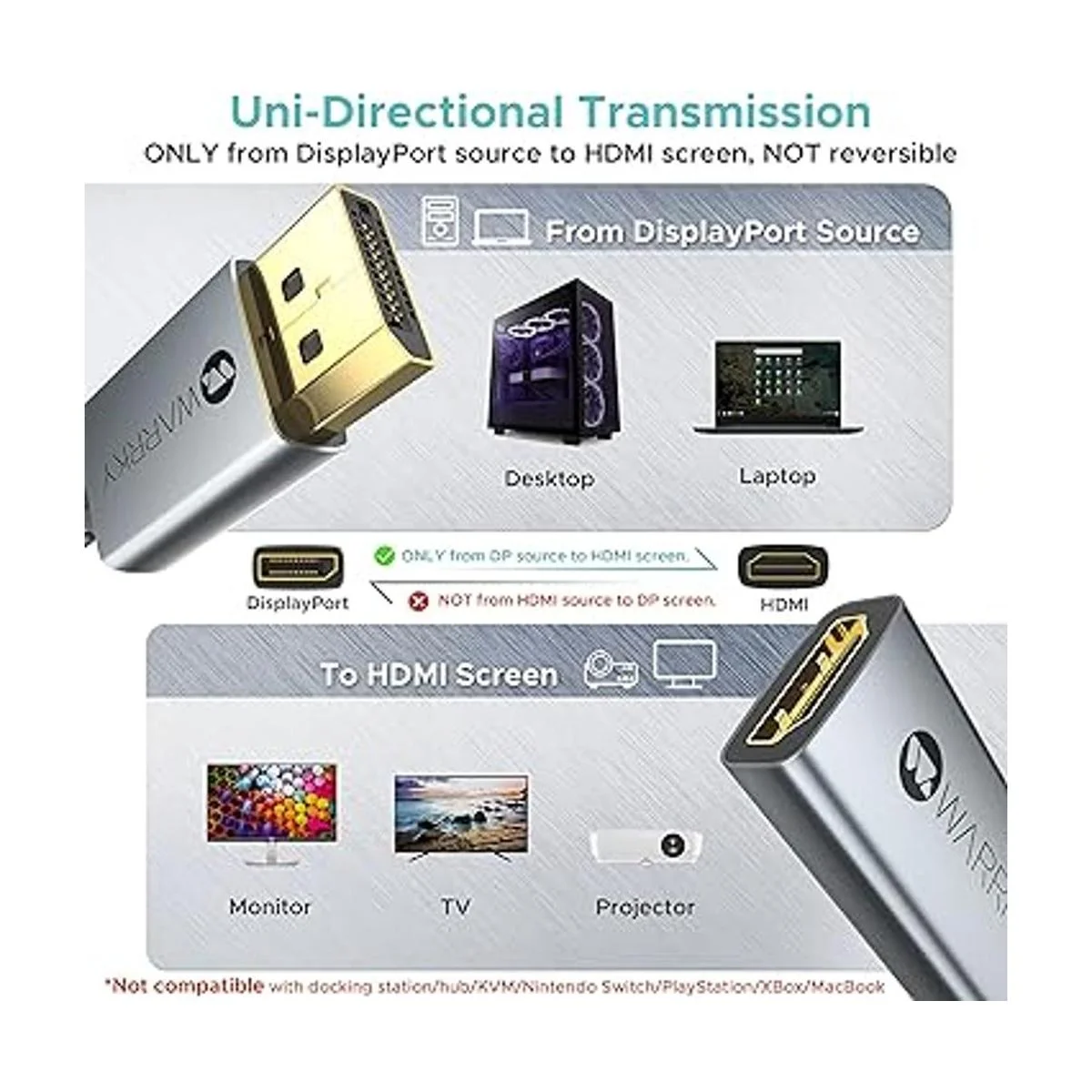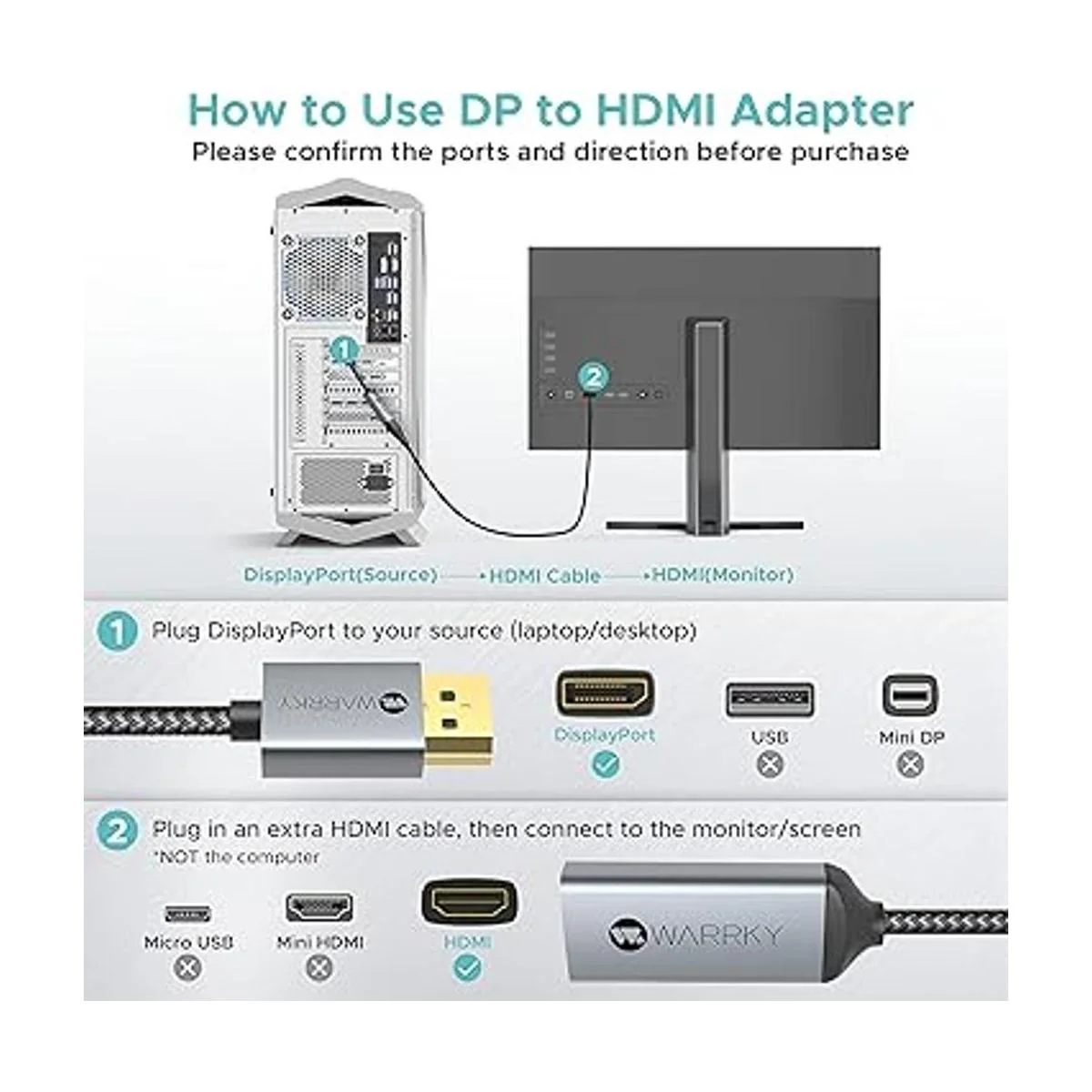 WARRKY 2K 60Hz, 1080p 120Hz, convertidor unidireccional de alta velocidad DP a monitor HDMI compatible con HP, Dell, GPU, AMD, NVIDIA y más. macho a hembra. pasivo
