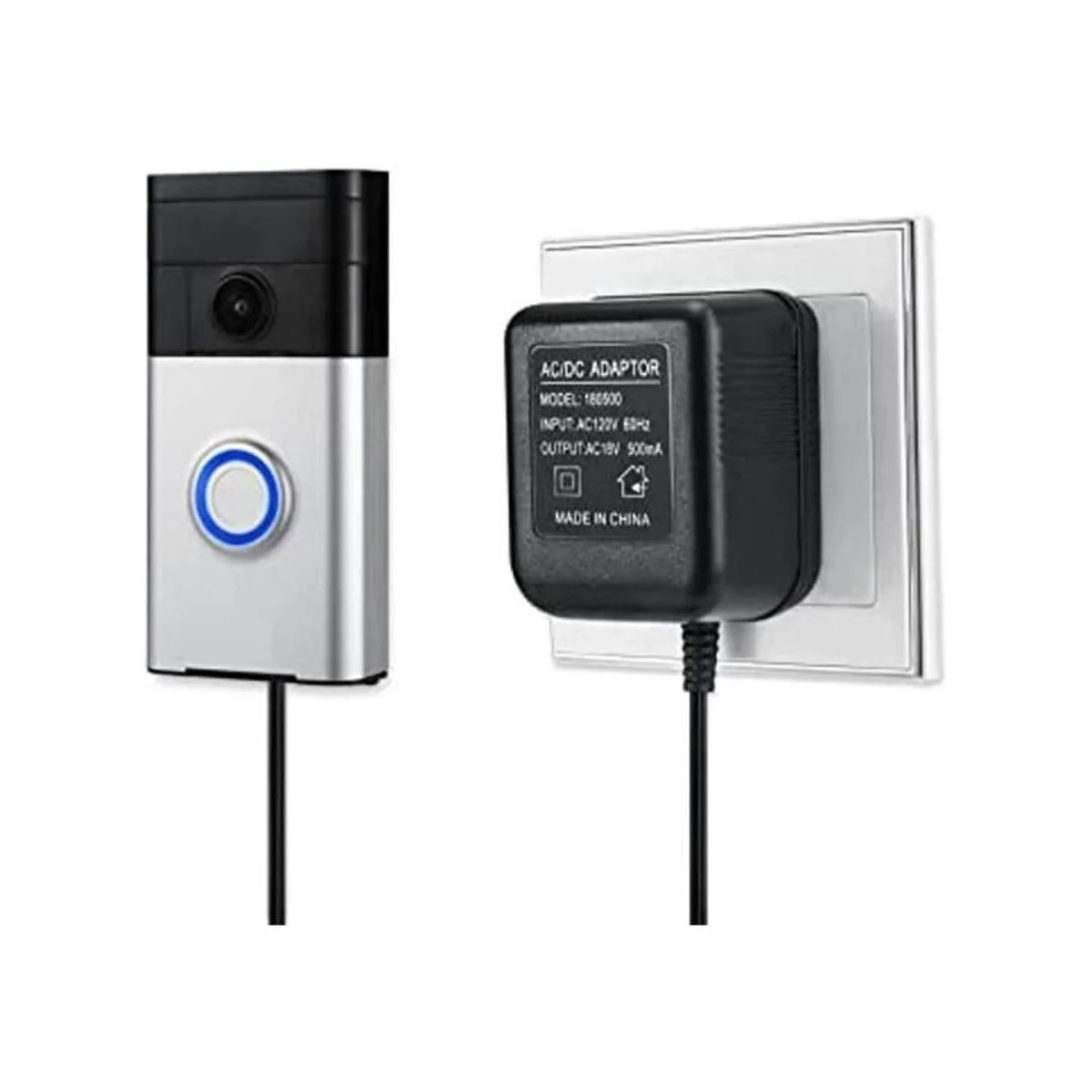 Forma y función: Olvídate de la molestia de cambiar tu batería conectando directamente tu Ring Video Doorbell al adaptador de corriente. El cable de 8.2 ft de largo se puede configurar en minutos. salida de 18 V/500 mA