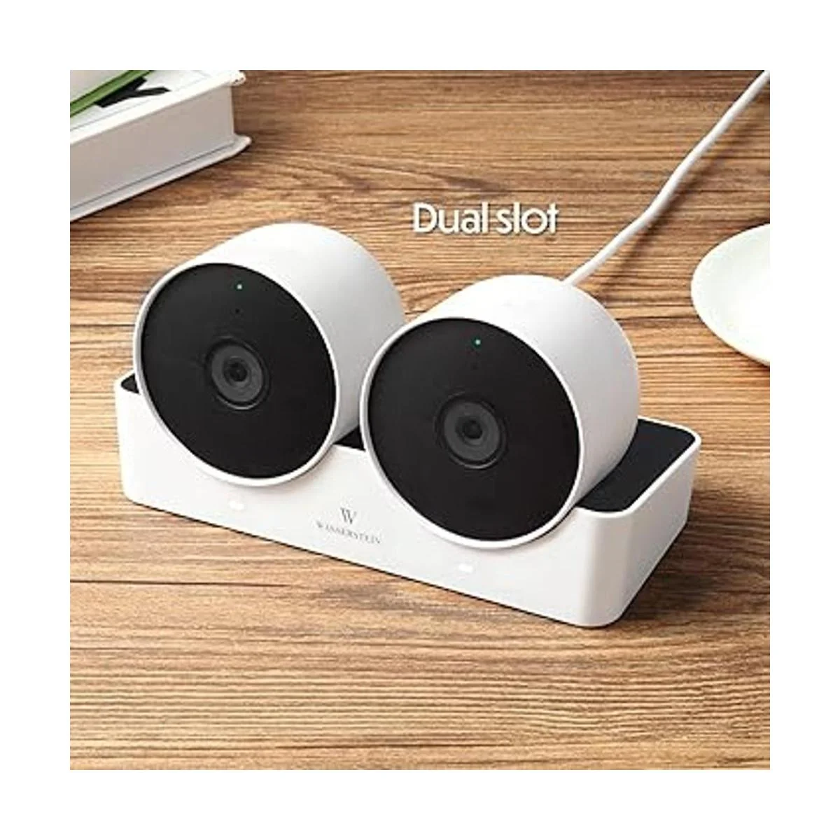 Wasserstein Estación de carga compatible con Google Nest Cam para exteriores o interiores, batería, ranura de carga dual para cámara nido Nest Cam no incluida