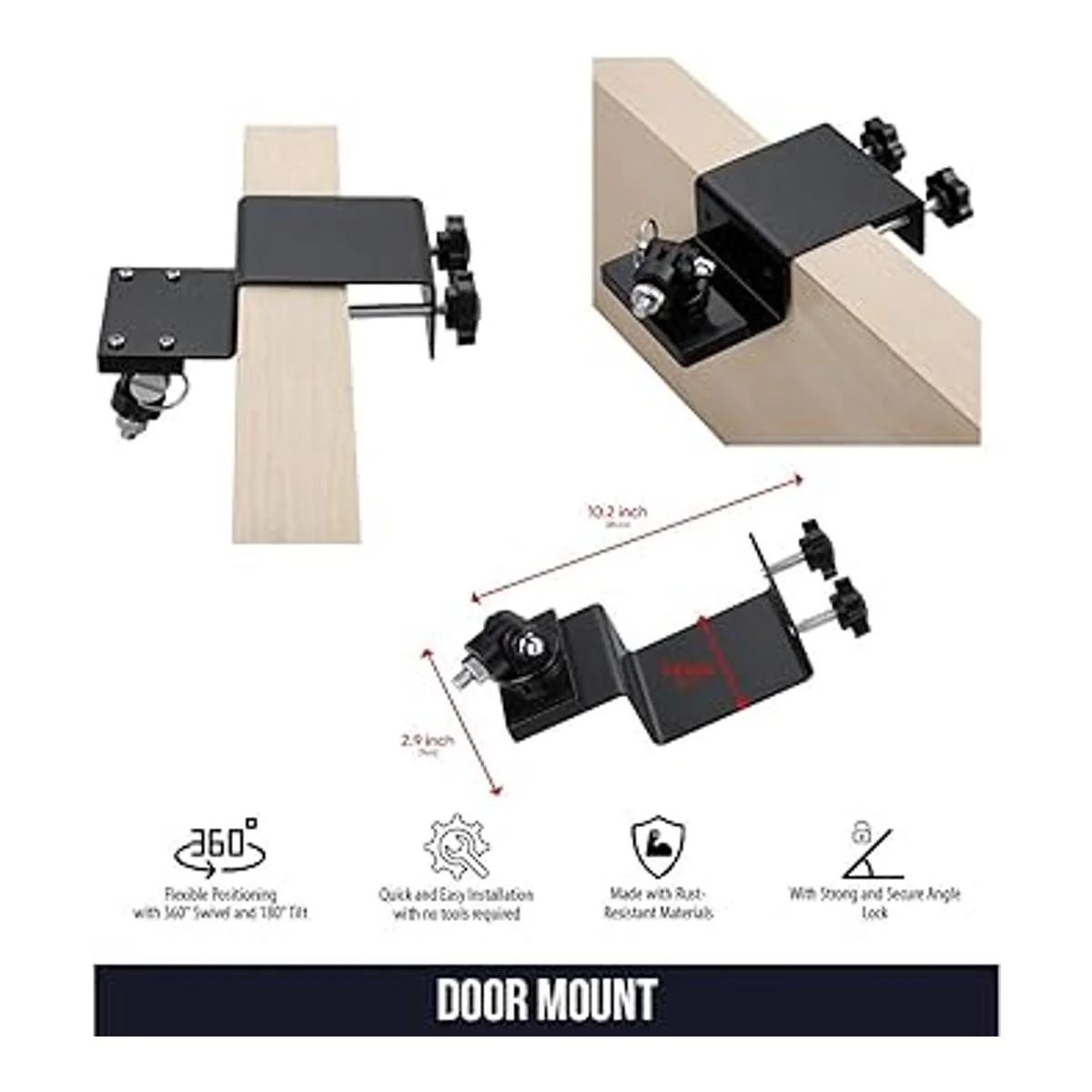 Colocación flexible: el soporte de puerta se puede ajustar fácilmente con el giro de 360 grados e inclinación de 180 grados, lo que te permite colocar tu cámara de seguridad de forma flexible