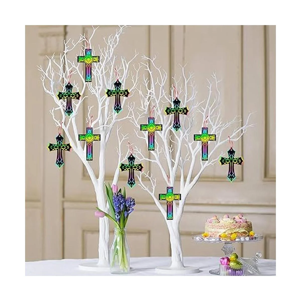 Adornos para colgar: puedes colgar adornos de cruz de papel para rascar en una cuerda, ventana, techo, árbol de Navidad, rama de plantas de interior, pomo de puerta, mesa, escritorio o en cualquier lugar que desees Ayuda a crear un ambiente festivo para ti y será una hermosa decoración colgante para el hogar.