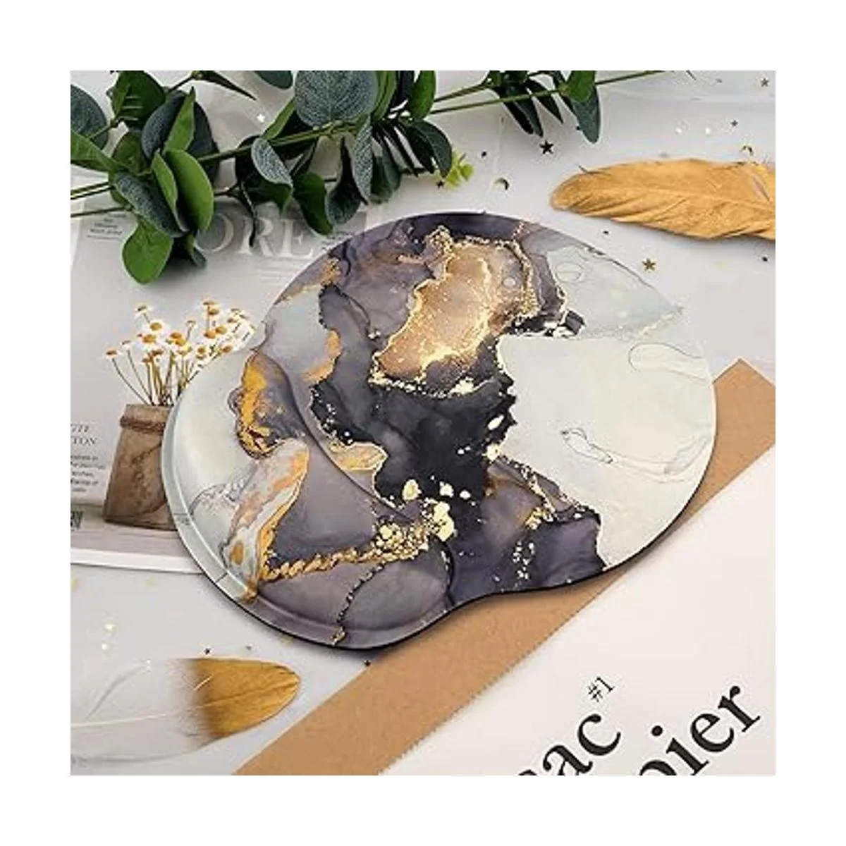 WAVEYU Alfombrilla de ratón de mármol gris dorado y negro para hombres y mujeres, base de goma antideslizante, alfombrilla de mouse para escritorio, laptop, juegos, computadora de trabajo, fácil escritura y alivio del dolor