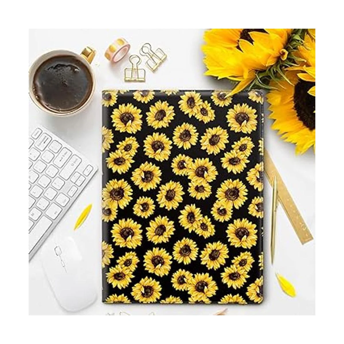 WAVEYU Funda tipo portafolios para mujer, bonita carpeta para conferencias, currículum, organizador de documentos legales con cartaportapapapeles tamaño A4, tarjeteros de visita, funda para documentos, girasol