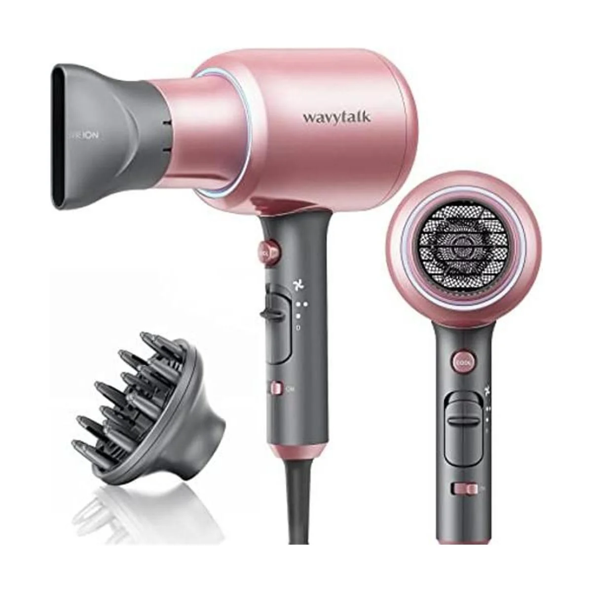 Wavytalk Secador de pelo iónico profesional con difusor y concentrador para cabello rizado, secador de iones negativos de 1875 W, boquilla de tecnología de cerámica para un secado rápido como salón ligero y silencioso