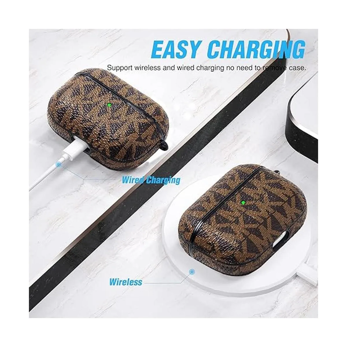Material de alta calidad: la funda para Airpod Pro está diseñada con exterior de piel sintética e interior de TPU suave delgado para un marco a prueba de golpes, mantiene tu funda AirPods Pro totalmente protegida y en condiciones originales.