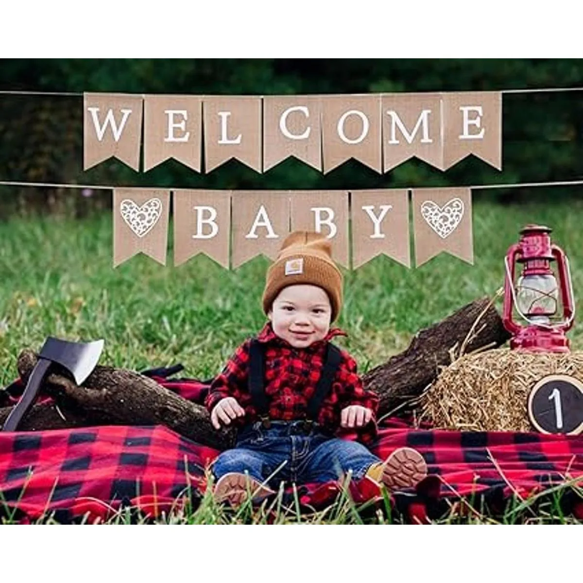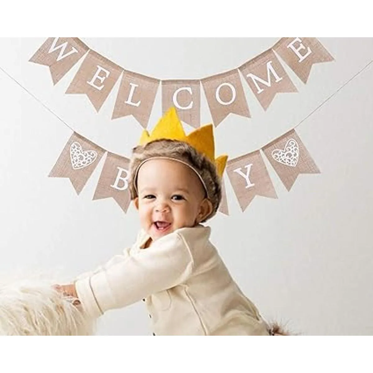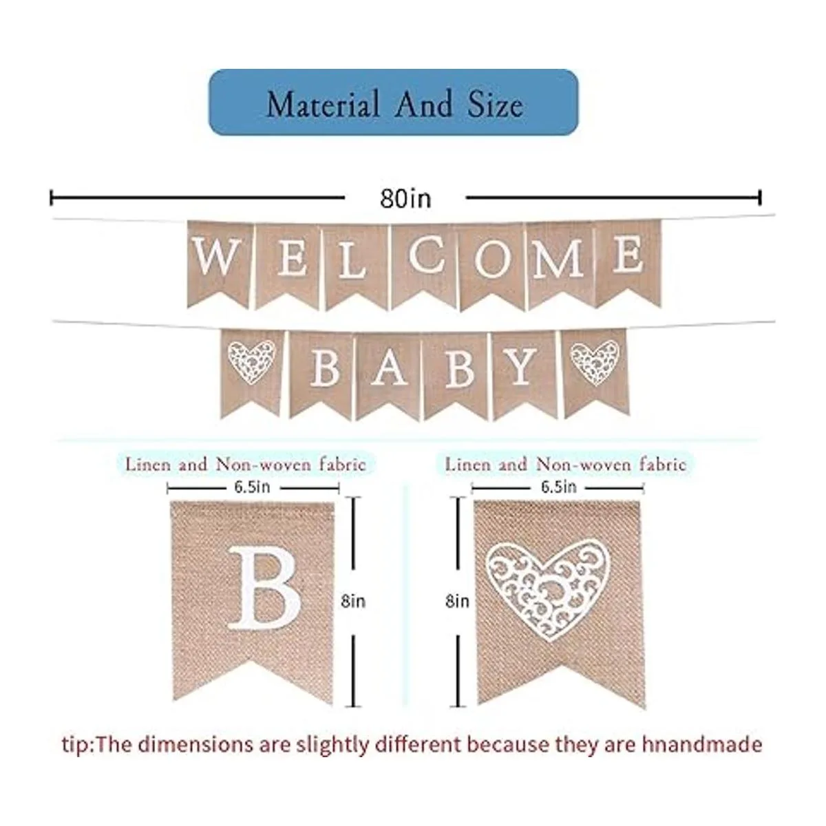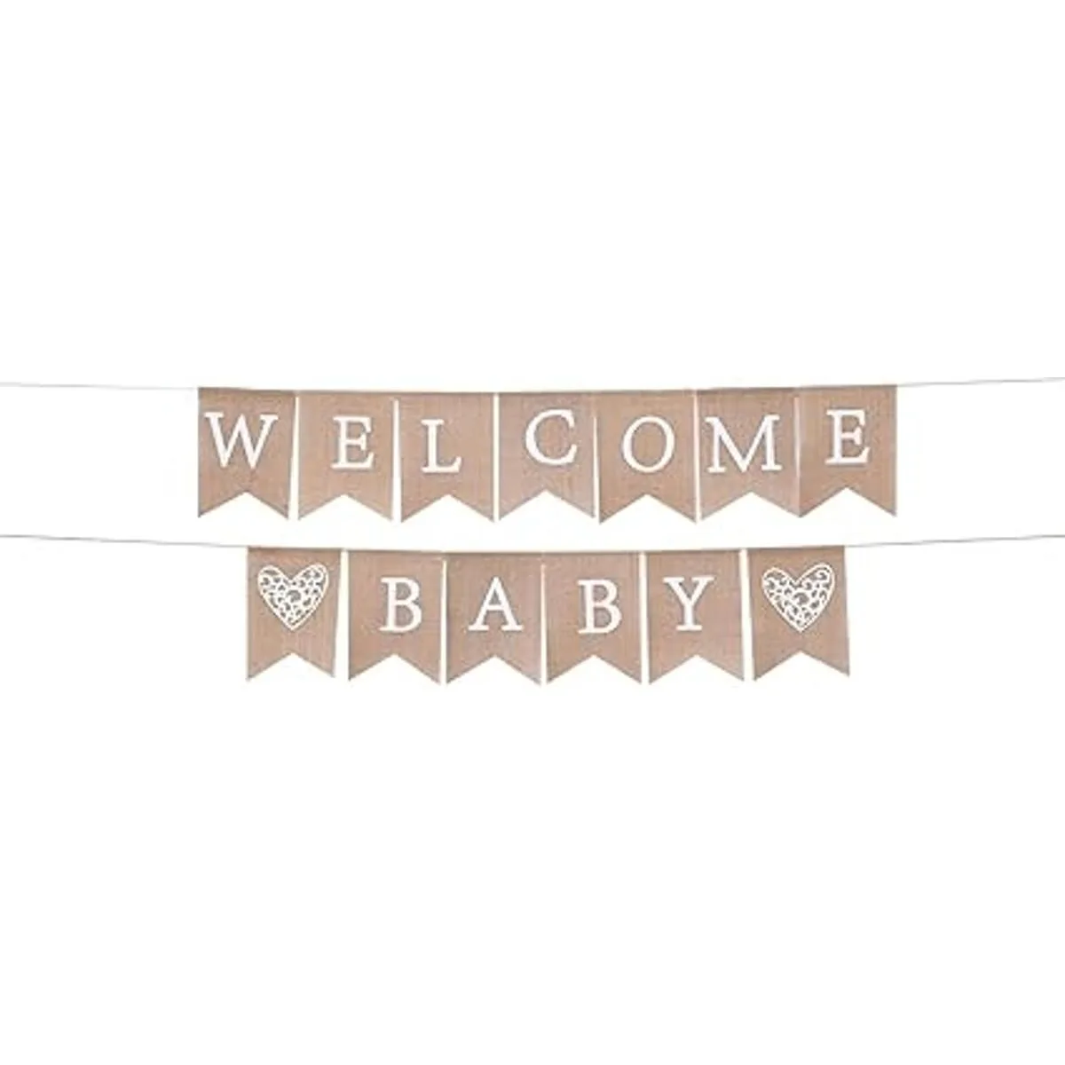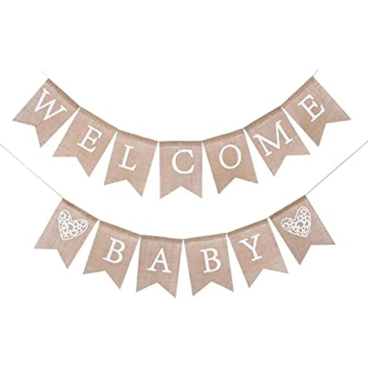 WAWOO Banner de bienvenida para bebé de arpillera, guirnalda de banderines para fiesta de baby shower, adorno de regalo, accesorio de foto de bebé, letrero de bienvenida para baby shower