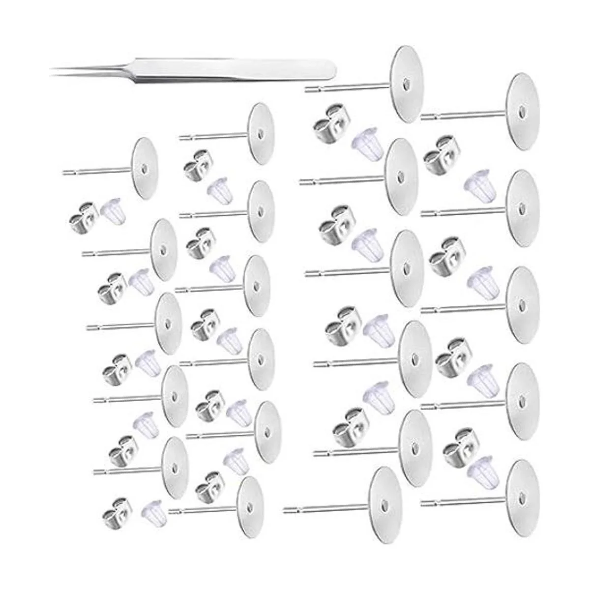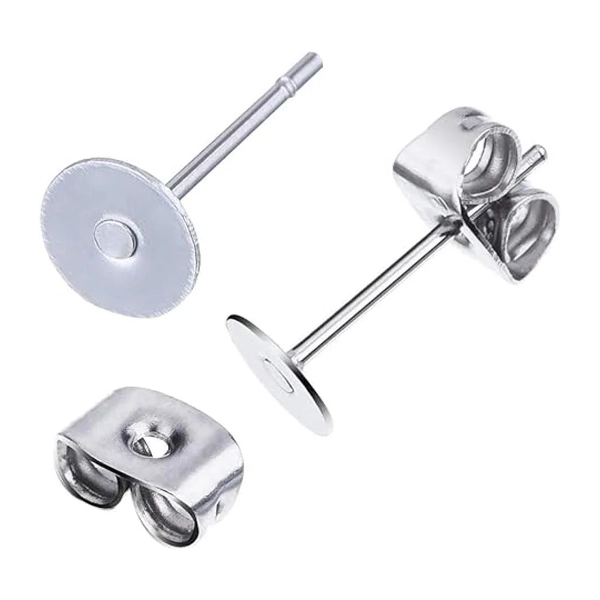 Waybas 1200 piezas de aretes de acero inoxidable hipoalergénicos de 0.197 in con almohadilla plana, aretes en blanco con parte trasera de aretes de mariposa y aretes de bala de silicona para hacer joyas
