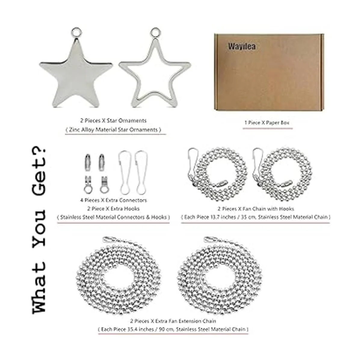 Paquete de 2 adornos de estrella: cadena decorativa para ventilador de techo para niños y niñas, decoración del hogar.