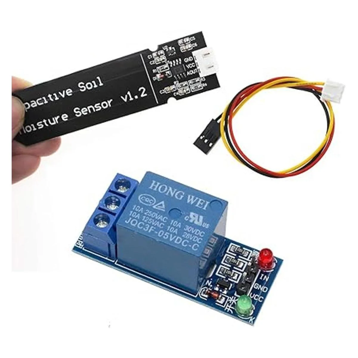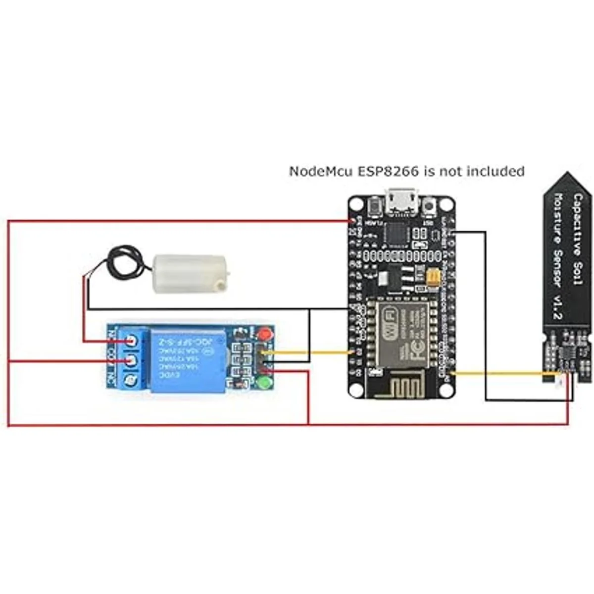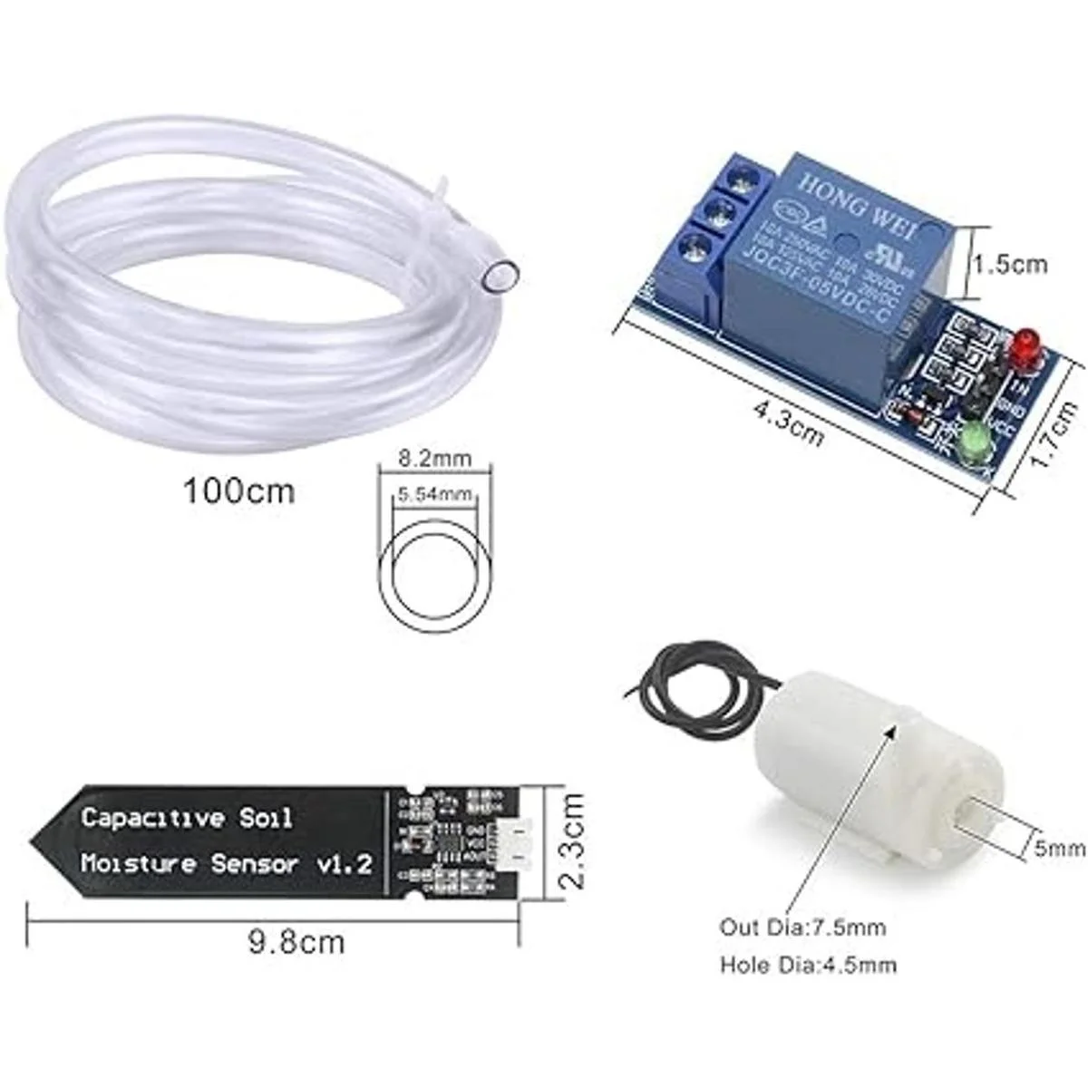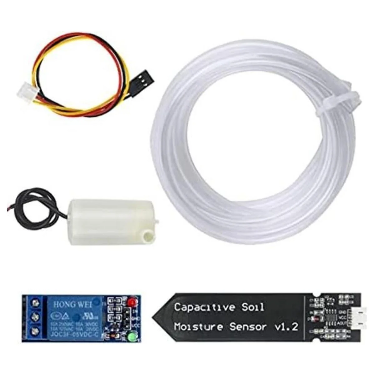 WayinTop Kit de riego automático de bricolaje con sensor capacitivo de humedad del suelo, 1 canal, módulo de relé de 5 V y bomba de agua tubo de vinilo de 3.3 ft para plantas de jardín, macetas de hierbas