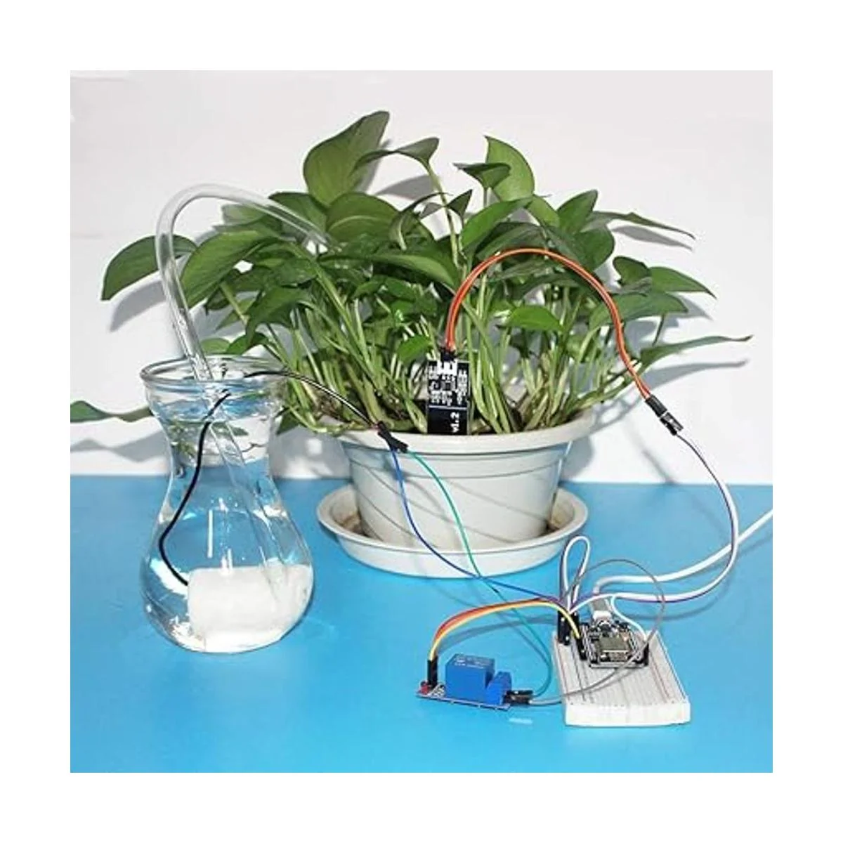 Sistema de riego automático: combina bomba, tubos, sensor de humedad del suelo y módulo de relé de 5 V de 1 canal en un sistema de riego de plantas, incluyendo kits para un sistema de riego por goteo Arduino.