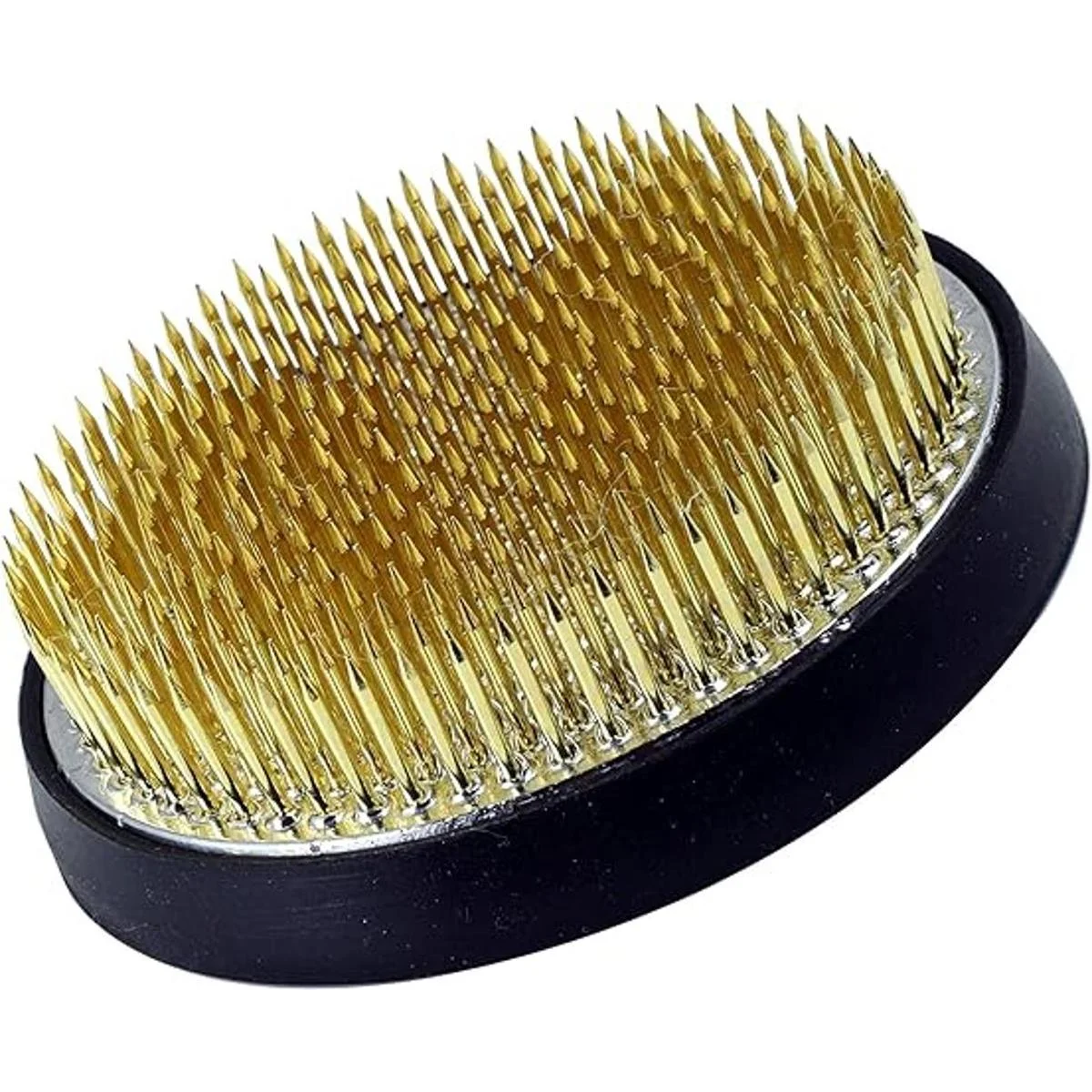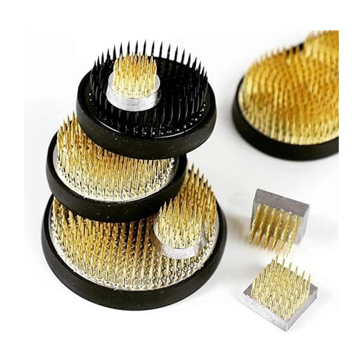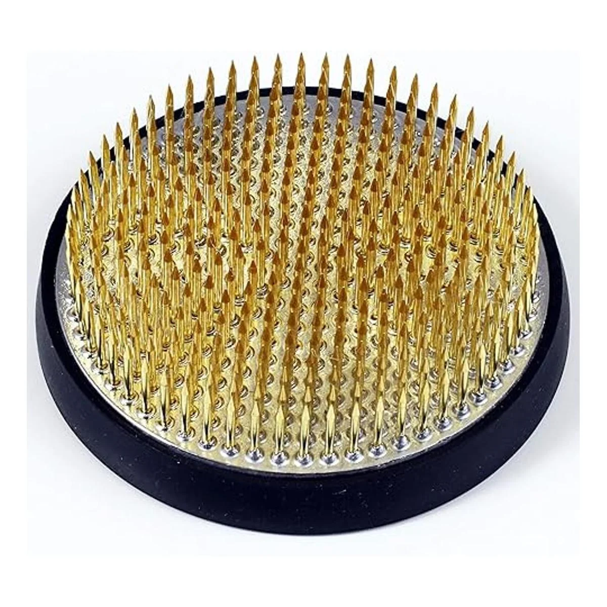 Especificaciones: Tamaño: 3.150 x 3.150 x 0.827 in. Peso: 14.43 oz. Material: latón, acero inoxidable base y agujas, goma natural junta Tamaño del pin: 0.055 in de diámetro, 0.512 in de altura. Número de agujas: 331. Origen: Sanjo, Prefectura de Niigata Japón