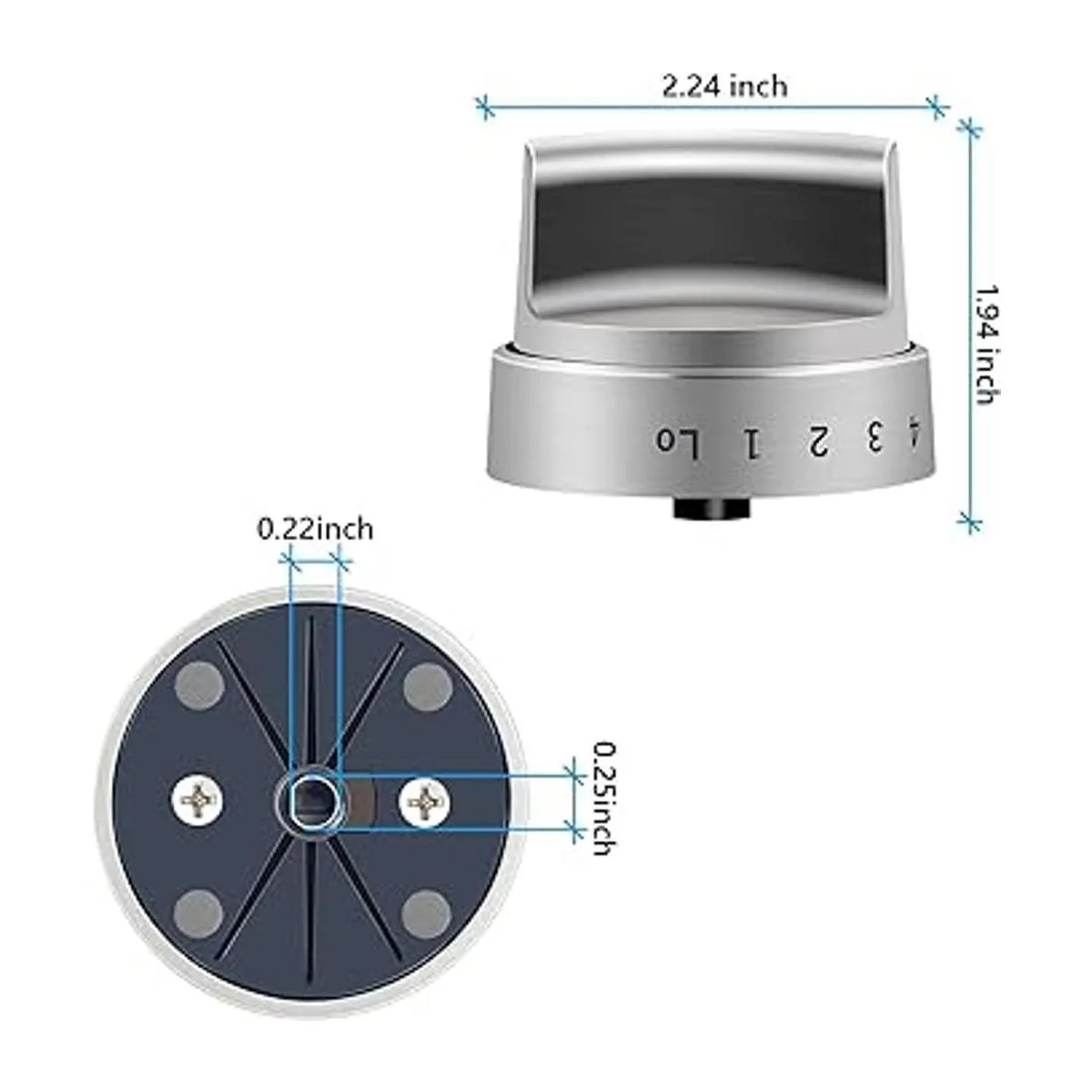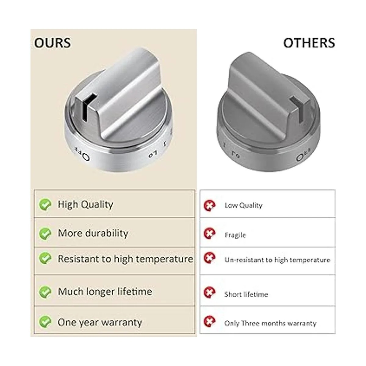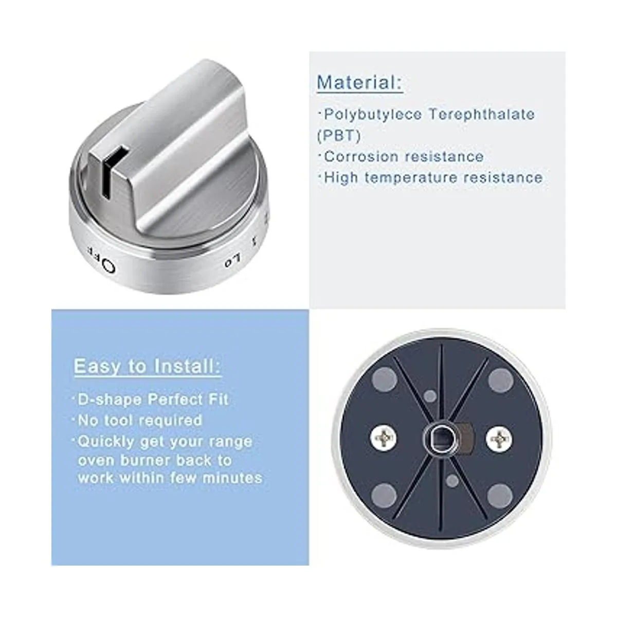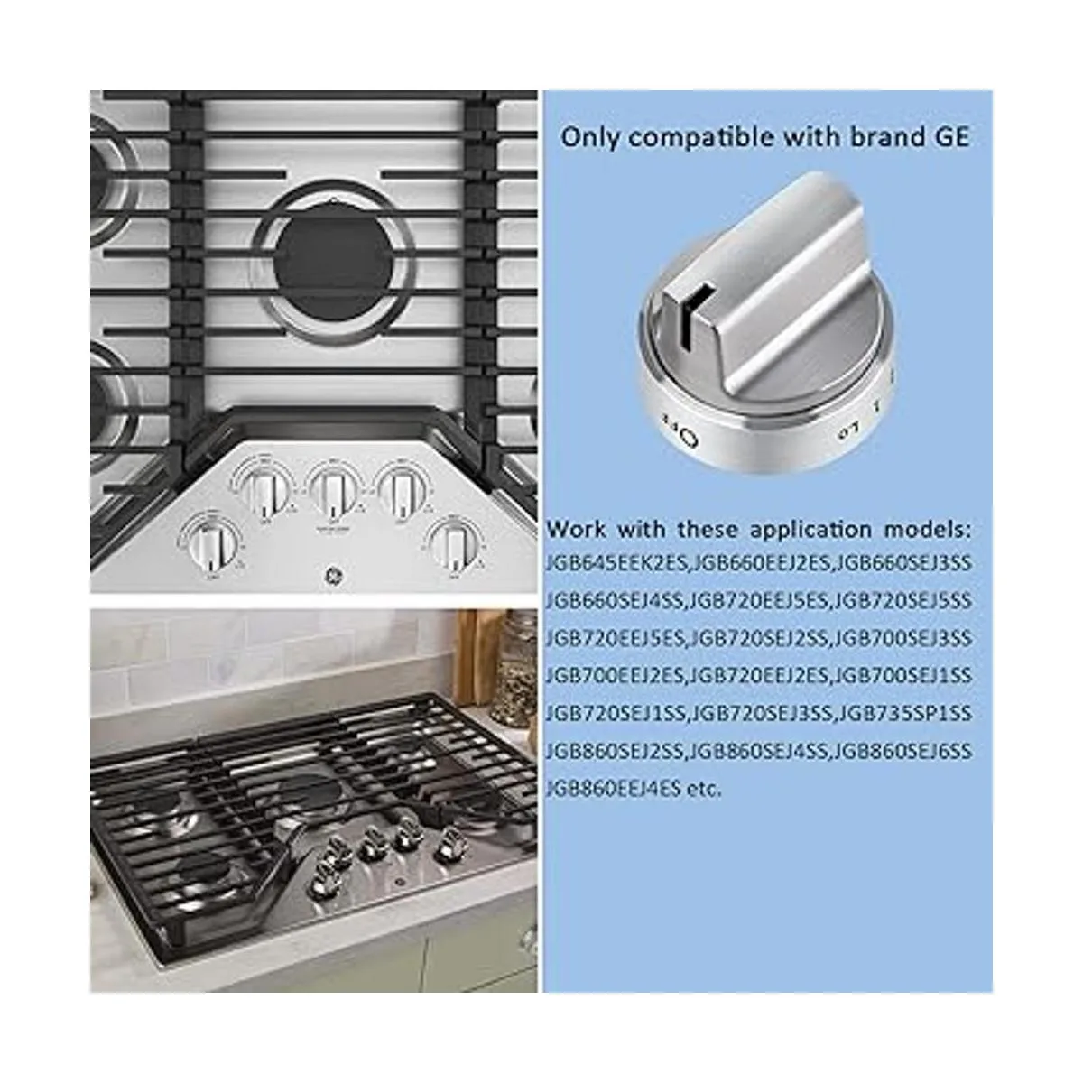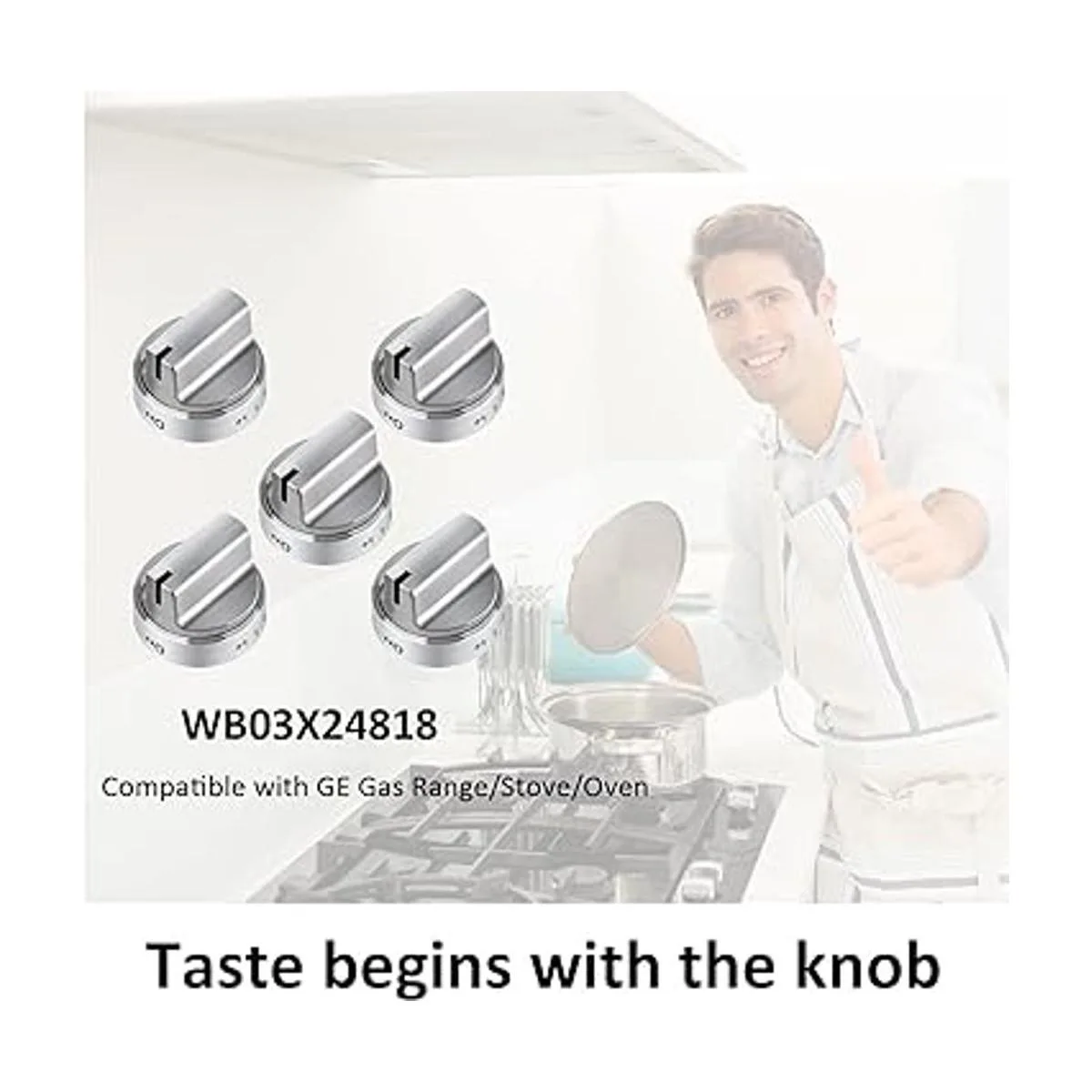 WB03X24818 Perillas de control de quemador de gas con aspecto de acero inoxidable, compatibles con perilla de estufa de gas GE Range, reemplazos PS11729081 5 unidades